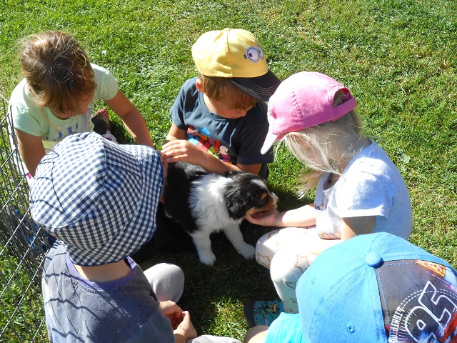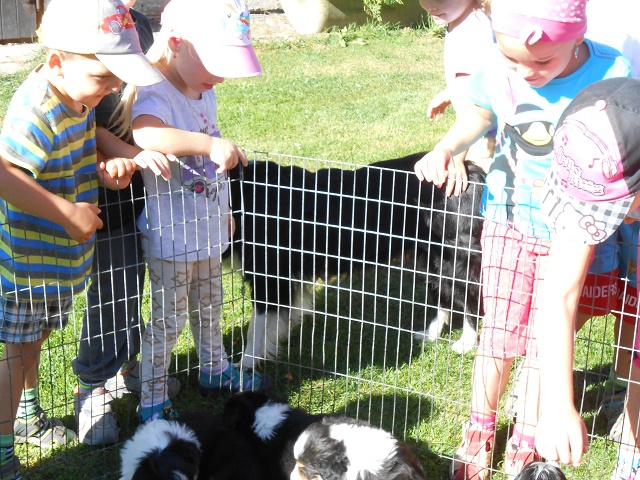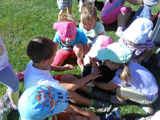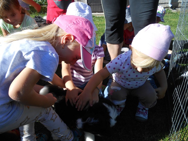 Využili jsme krásného počasí, podnikali jsme vycházky do okolí nebo jsme byli na školní zahradě. Navštívili jsme i štěňátka u paní Řezníčkové.