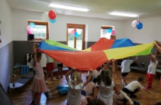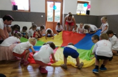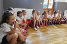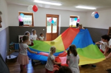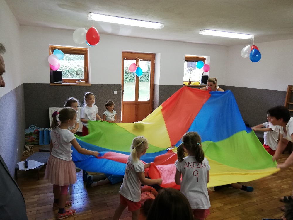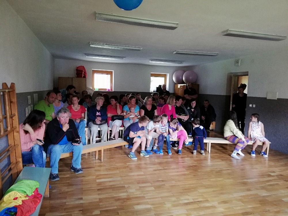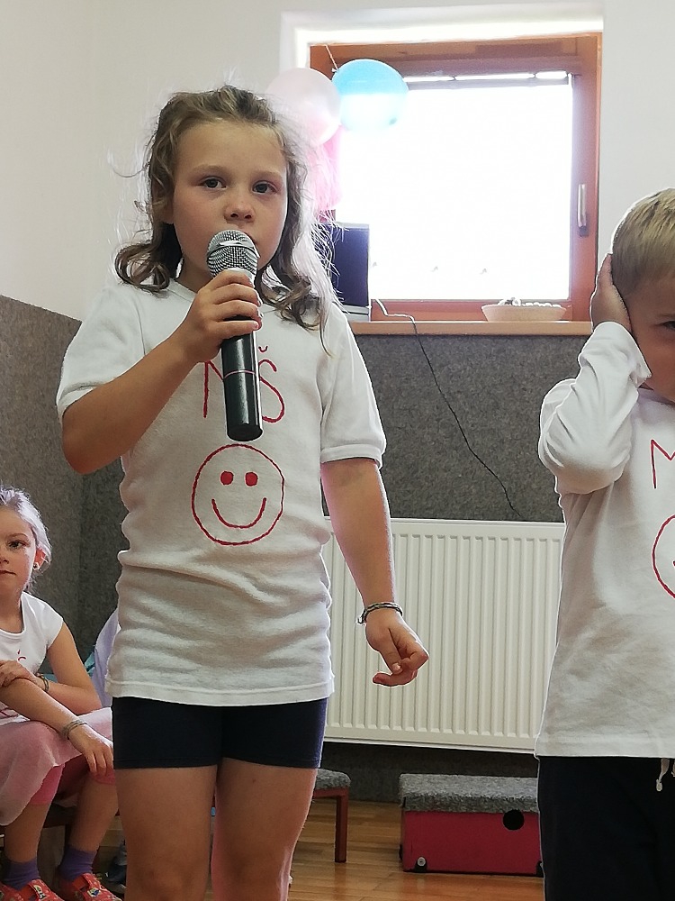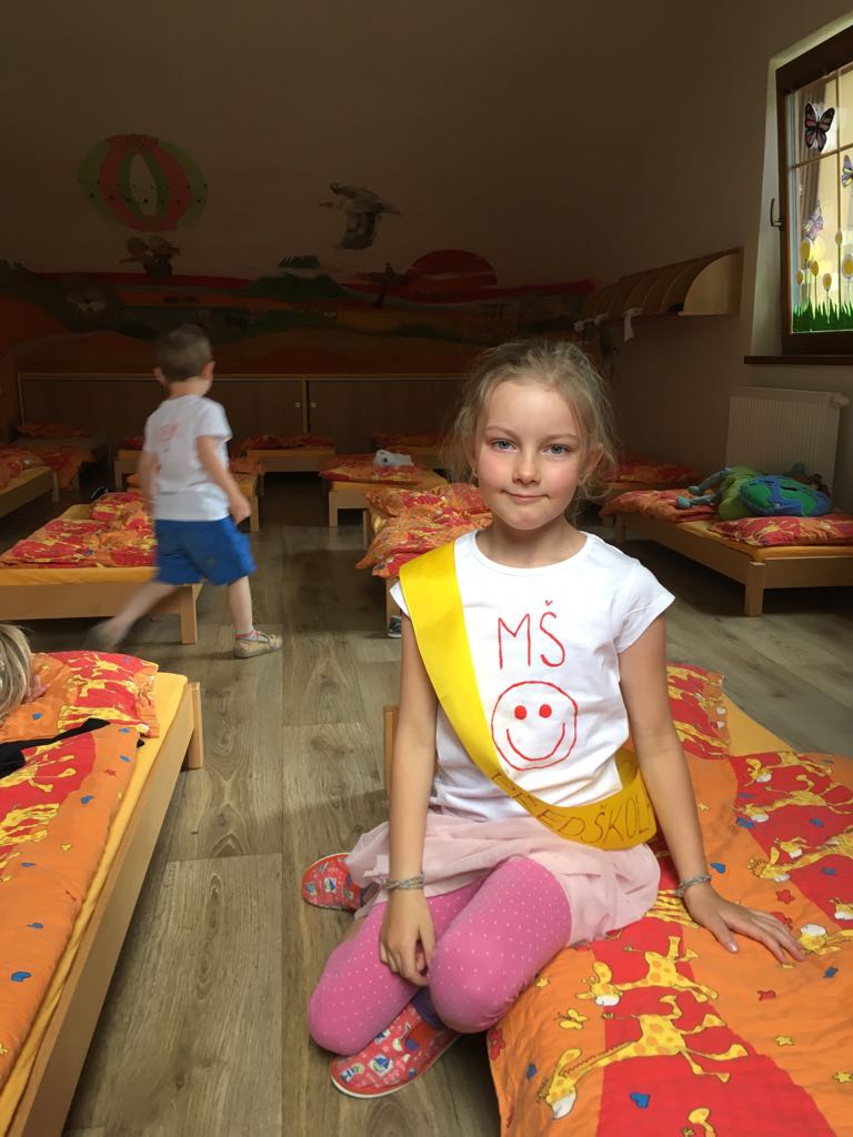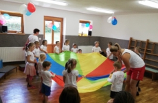 Vrátili jsme se do doby spartakiády – nastoupili jsme s písní Poupata. Říkanky a písničky byly ve sportovním duchu, zacvičili jsme si i s padákem. Na závěr jsme se rozloučili se šesti předškoláky, 5 dětí půjde do ZŠ Police nad Metují, 1 chlapec bude navštěvovat ZŠ Machov. Přejeme co nejúspěšnější start! Dětem popřál i pan starosta Friml.