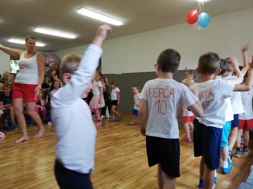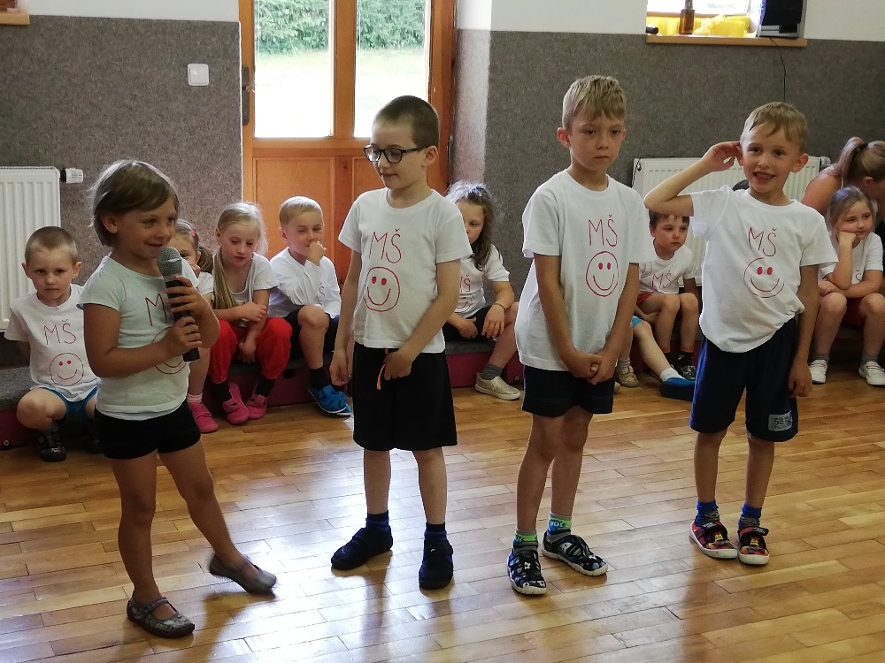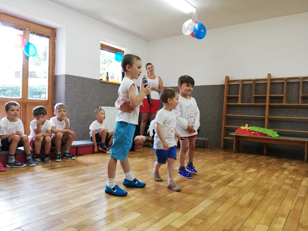 V úterý 26.6.2018 proběhlo závěrečné rozloučení s předškoláky. Tentokrát jsme byli za sportovce. Vystoupení muselo kvůli nepříznivému počasí proběhnout v tělocvičně.