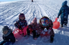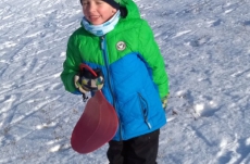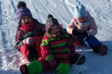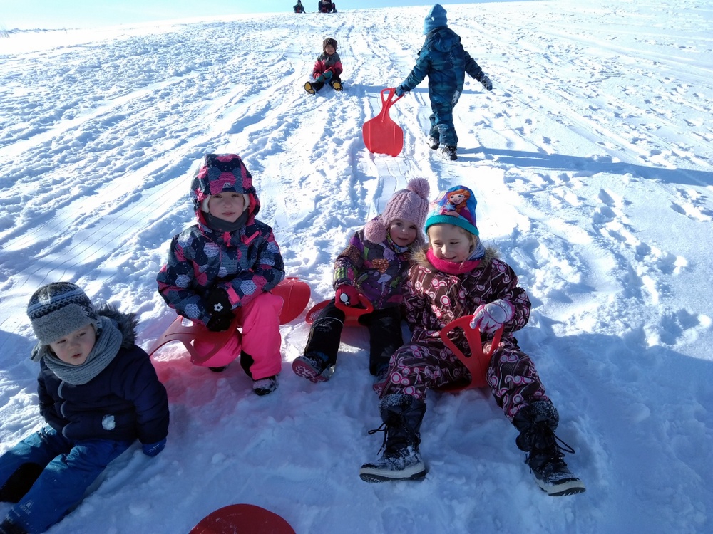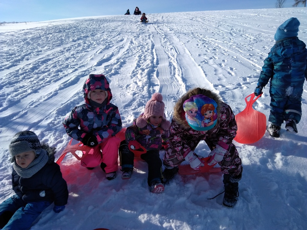 Během vycházek využíváme sníh k radovánkám, jezdíme na kluzácích, kloužeme se. Ve školce jsme se věnovali i pokusům se sněhem a ledem.