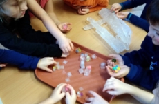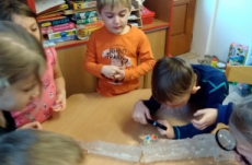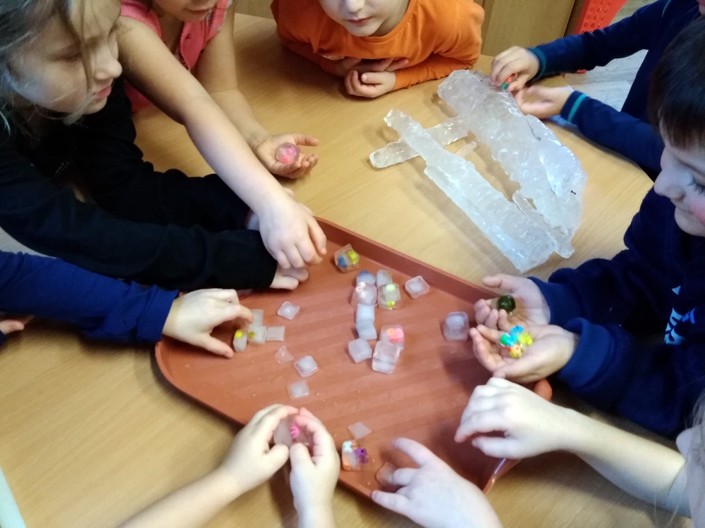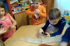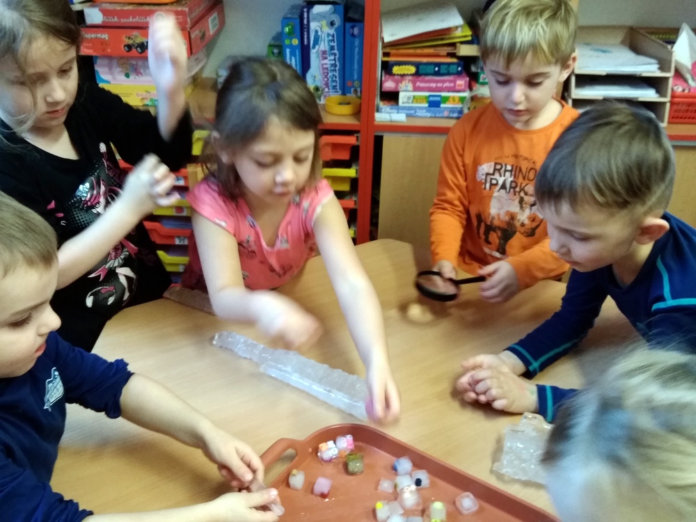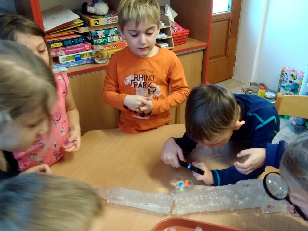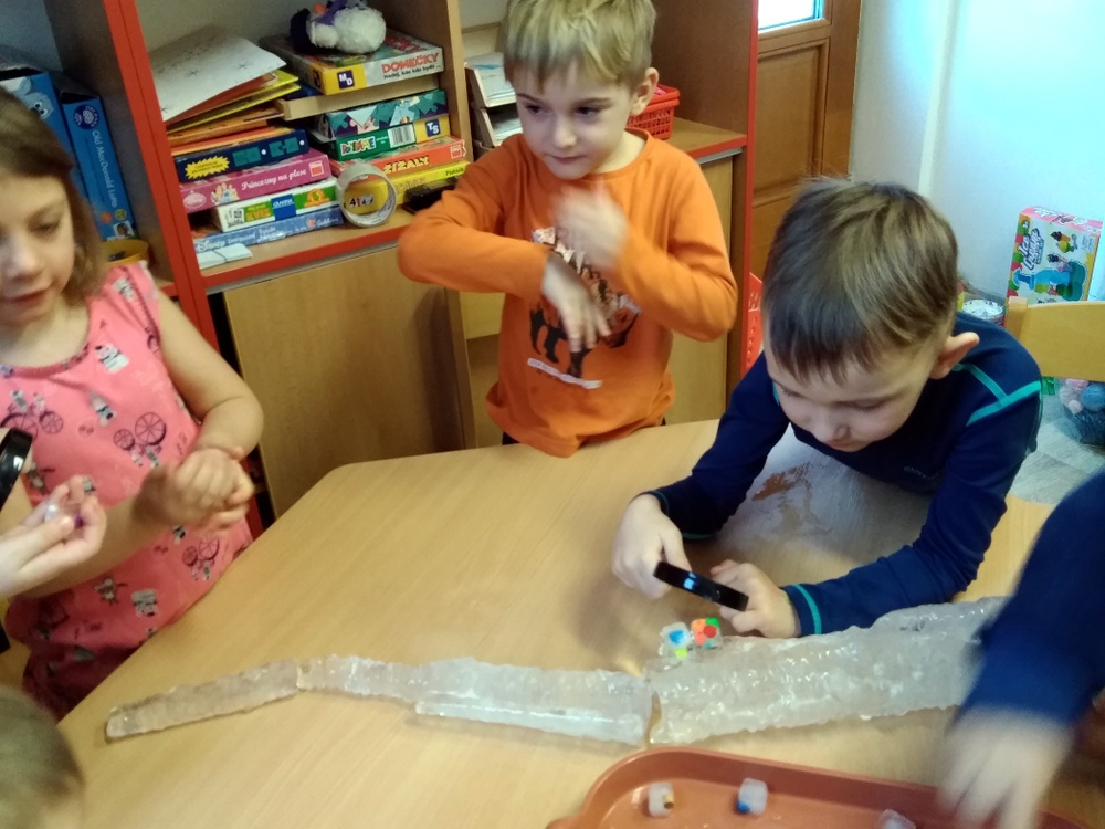 Pozorovali jsme, jak se vytváří led, jak taje sníh, jak z něj vzniká špinavá voda, jak jsou rampouchy špičaté atd. Zahráli jsme si i hudebně pohybovou hru Sněhulák.