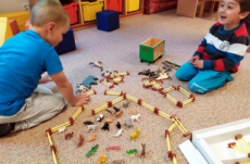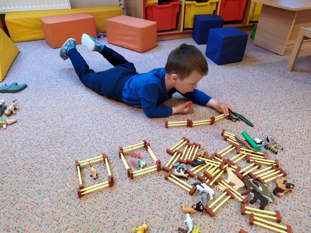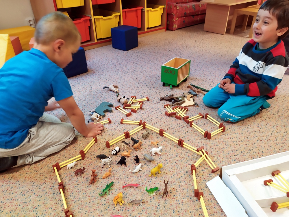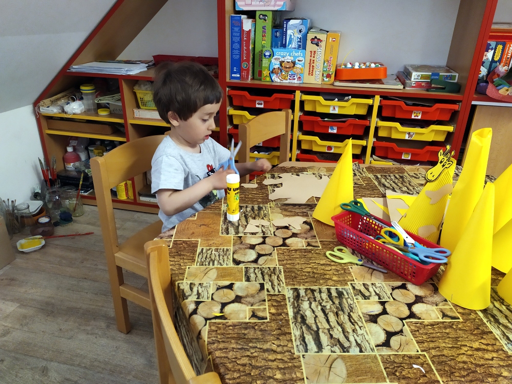 Tento týden jsme si s dětmi povídali o tom, jaká zvířátka můžeme vidět v zoologické zahradě, jak vypadají, jaké dělají zvuky a kde bydlí. Společně jsme si na ně zahráli, některé jsme si vytvořili a také je poslouchali a hádali, kdo se nám to zrovna ozývá – a z některých zvuků šel docela strach!