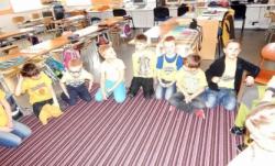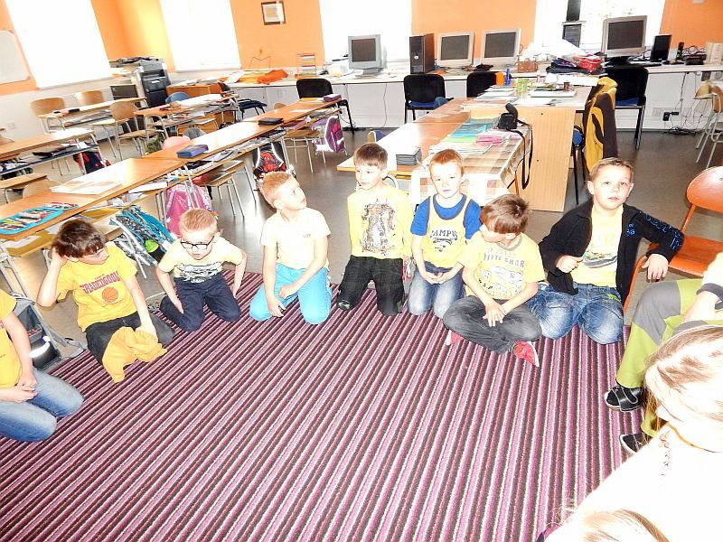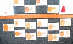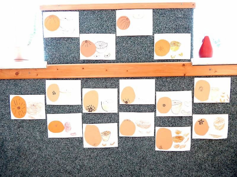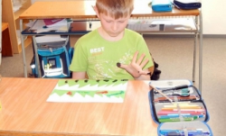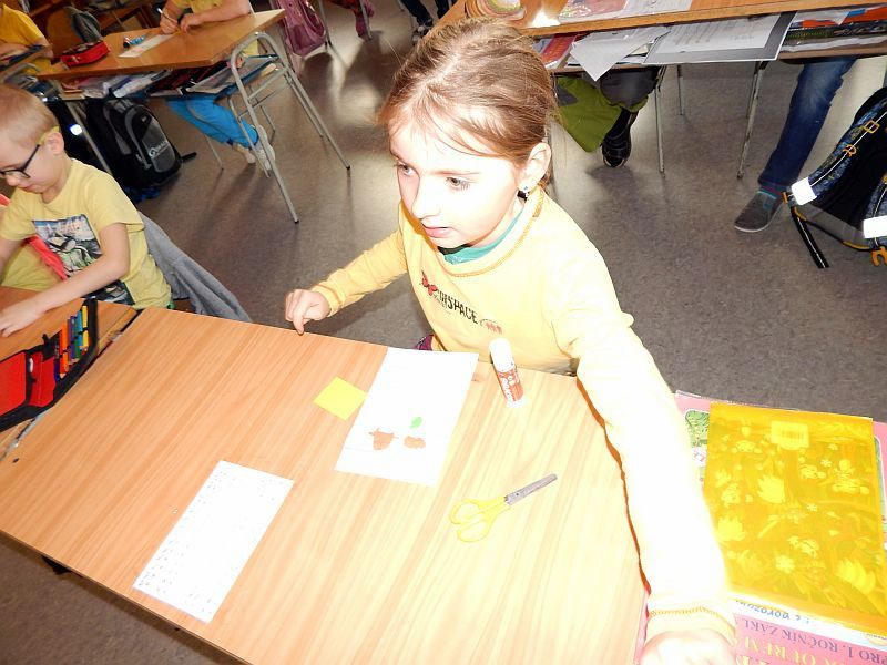 Pondělí byl ORANŽOVÝ DEN – školáci si vyrobili koláž z pomerančů a pak vyzkoušeli hbitost a šikovnost svých prstů. Z krepového papíru vyráběli hyacint.