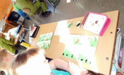 Čtvrtek byl ČERVENÝ DEN – na čtvrtce se objevily jahody a berušky. Prstíky vyráběly rudou růži.