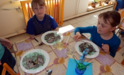 Každý den jsme mimo učení věnovali chvíli na zajímavou činnost spojenou s barvou danou pro tento den. Ve čtvrtek jsme pak také navštívili výstavu o páteru Bouškovi, který žil po dobu deseti let na Bezděkově a měl velký přínos pro zdejší kraj. Jako každý rok jsme se v poledne těšili i na barevný oběd. I ten byl přizpůsoben určené barvě.