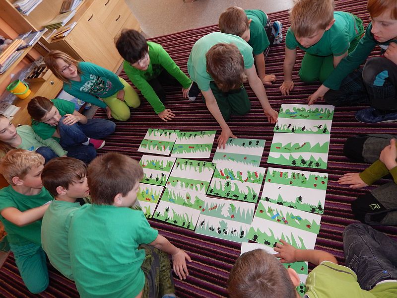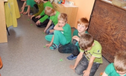 Barvám jsme přizpůsobili činnosti, které jsme jednotlivé dny dělali. Barevný byl i jídelníček. Na „šmoulí“ kaši jsme se těšili celý týden. Středu nám pak zpříjemnilo loutkové představení „Jejda, strašidýlka“. Týden se nám velmi líbil, škoda, že tak rychle utekl.