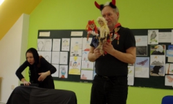 V pondělí 22.2. 2016 nás navštívili herci z divadelní agentury Ungertová z Hradce Králové, aby nám zahráli pohádku Čertova nevěsta. Toto představení bylo celkem dvakrát z technických důvodů odloženo a tak jsme se opravdu moc těšili.