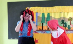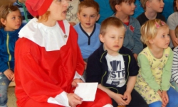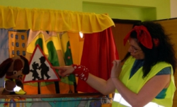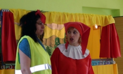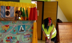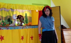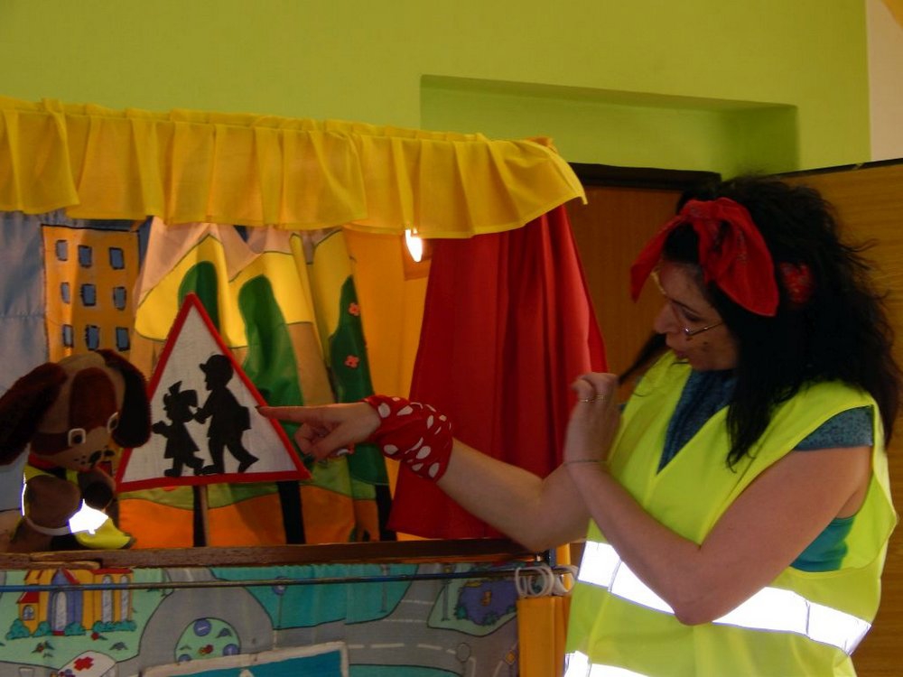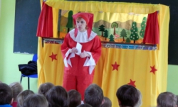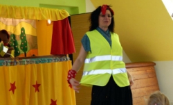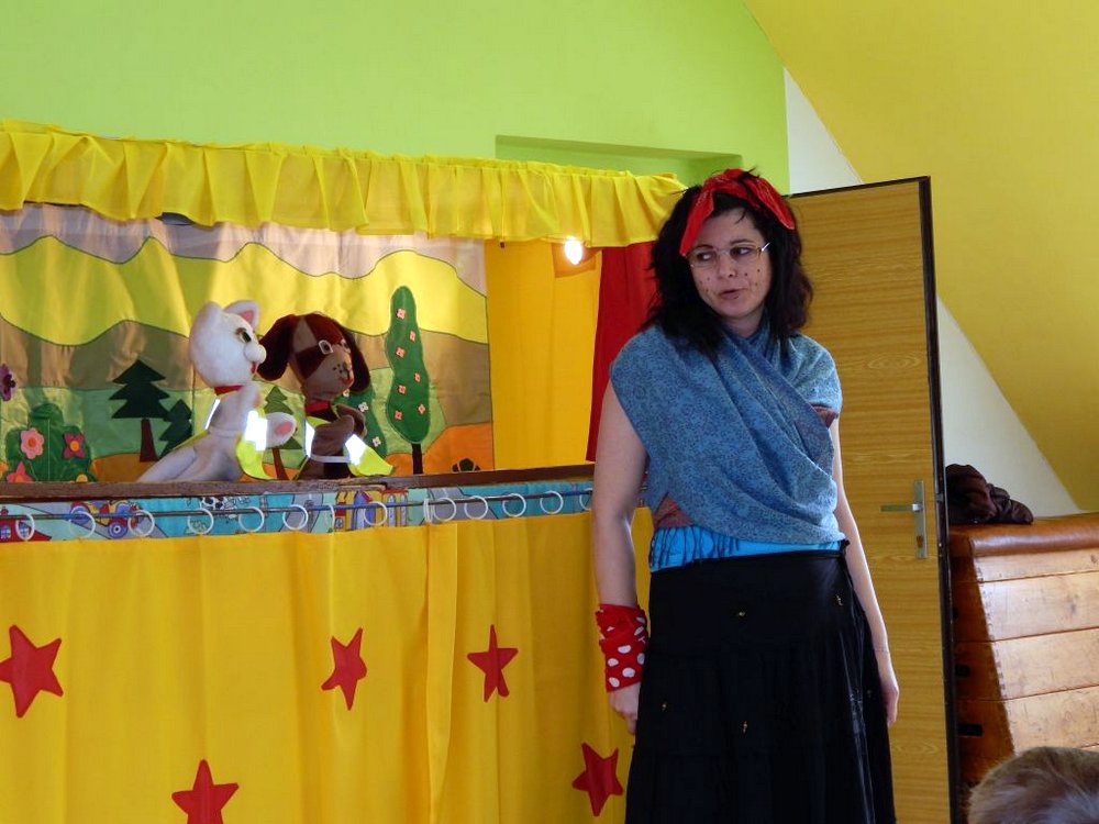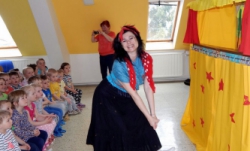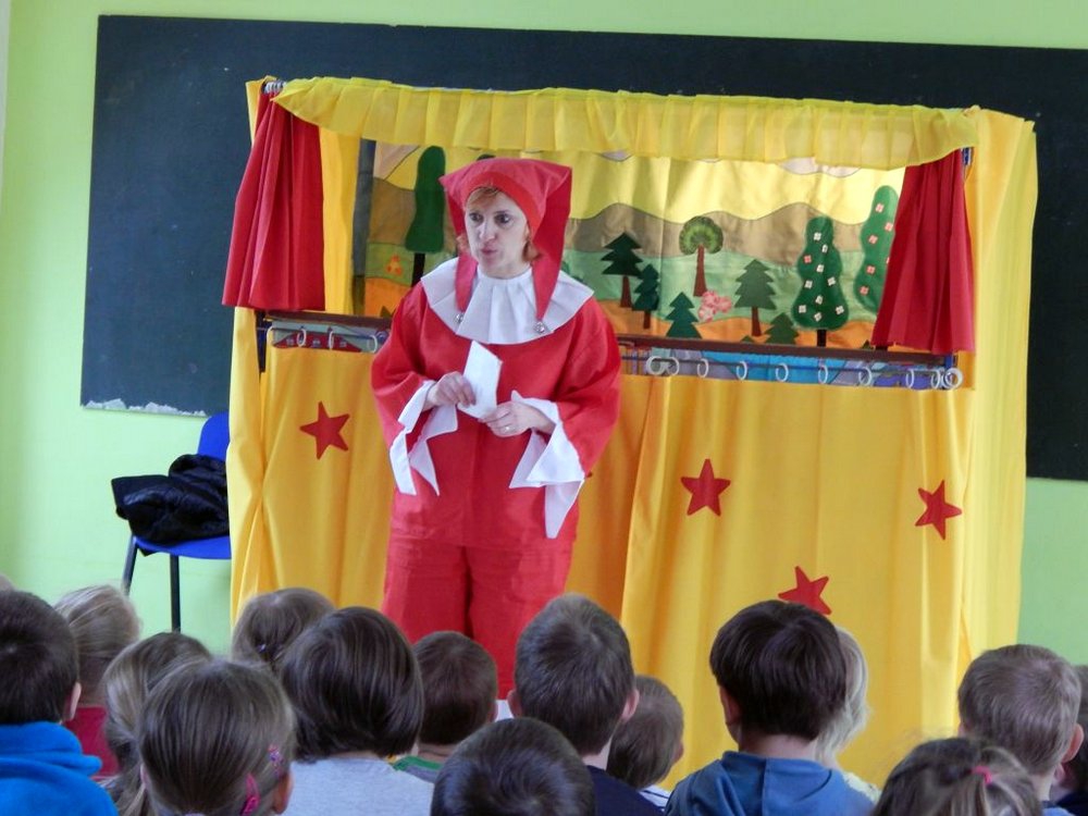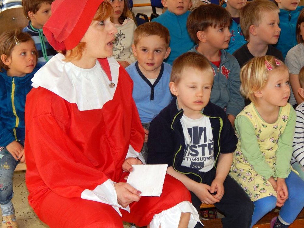 Ve středu 11.4. za námi přijelo divadlo Úsměv s pohádkou „Červená, stát!“. Čarodějnice při letu na koštěti měla nehodu, kdy se vyhýbala vráně a narazila do stromu.