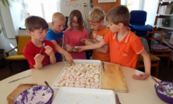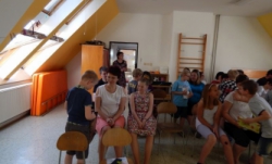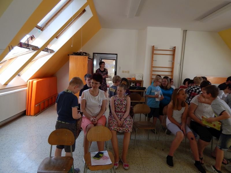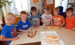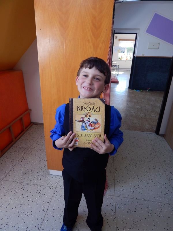 Čtení se jim opravdu velmi povedlo. Pak jsme si vyzkoušeli rodiče. Tatínkové si vybírali portrét maminky, který pro ně připravili jejich studentíci. Maminky si pak vybírali portrét svého „Zlatíčka“. Obrázky kreslili žáci navzájem. Za krásné čtení a pěkné obrázky dostali žáci od svých rodičů malý dáreček – knížku. Pak jsme se šli posilnit buchtou a jednohubkami, které dopoledne připravili žáci. Při občerstvení jsme si prohlédli fotografie žáků třetí třídy, kteří nás na konci roku opustí.