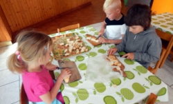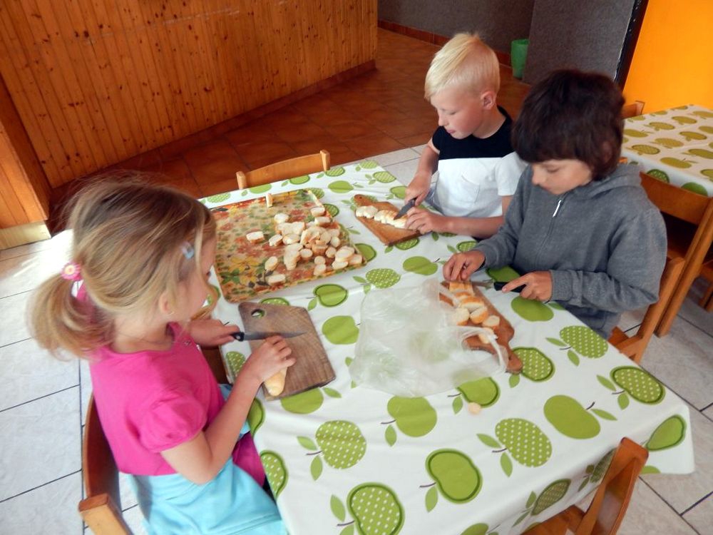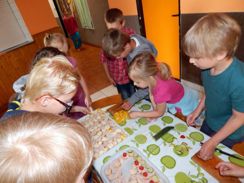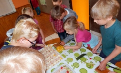Po těchto úkolech jsme si dali malé občerstvení. Dopoledne jsme upekli buchty a připravili jednohubky. K ochutnávce bylo i ovoce. Při mlsání jsme si pustili krátký výběr fotografií žáků 3.třídy. Připomněli jsme si na nich jejich působení na naší škole od jejich vstupu do MŠ až po dnešní dny.