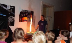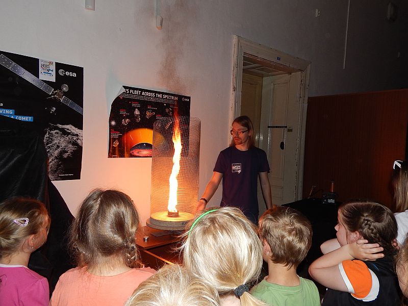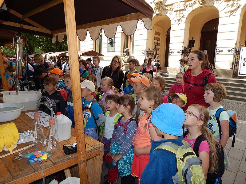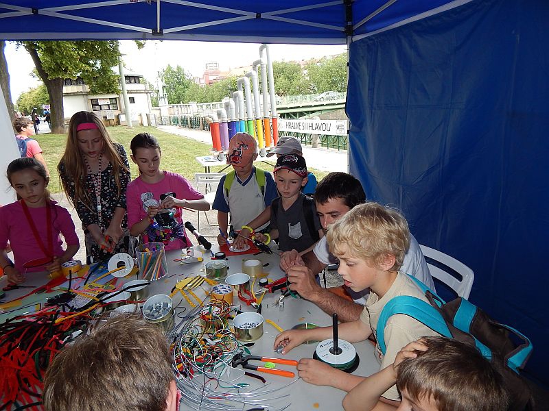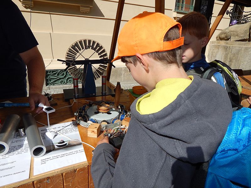 Žáci se zde v mnoha stáncích seznámili s fyzikálními jevy a jejich vysvětlování probíhalo hravou formou. Pokusy ve stáncích hořely, dýmily, vařily a klokotaly a každý účastník si mohl sám vše vyzkoušet na vlastní kůži. Viděli jsme např. start rakety, zkusili si posedět na fakírově židli, zabojovali si s roboty, prohlédli si různé optické jevy, hráli si na vlastnoručně vyrobené hudební nástroje a viděli spoustu dalších zajímavostí. U některých stánků byla možnost plnění úkolů. Za jejich zdárné zvládnutí se dostávaly lístky – „Hlavouni“. Ty pak bylo možné vyměnit za drobné odměny.