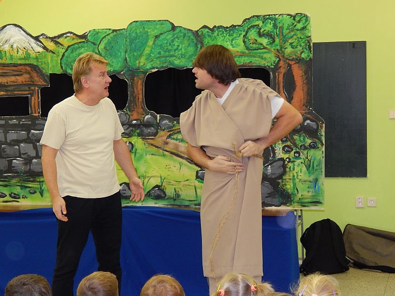 Žáci se zajímavou formou seznámili například s bajkou Havran a liška, Osel a jeho stín, Zajíc a želva, Orel a brouk. Všechny bajky byly propojeny pěkným povídáním o panu Ezopovy a po každém příběhu bylo vždy vyzdviženo ponaučení. Přestavení se nám velmi líbilo.