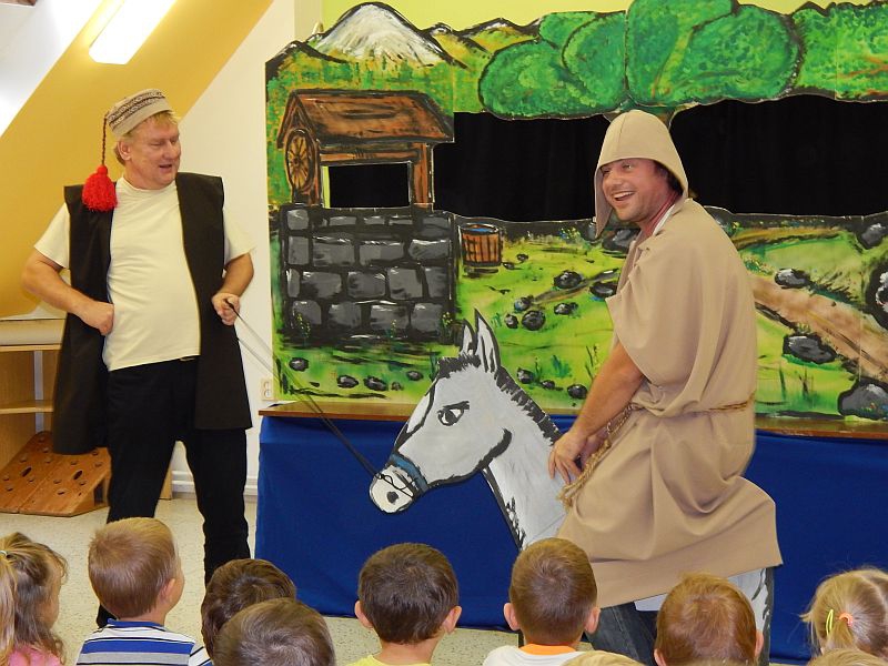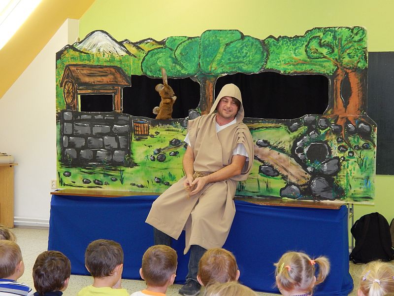V pondělí17. října nás navštívilo Divadélko pro školy z Hradce Králové s pohádkou „Ezopovy bajky“.