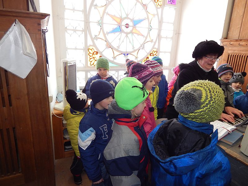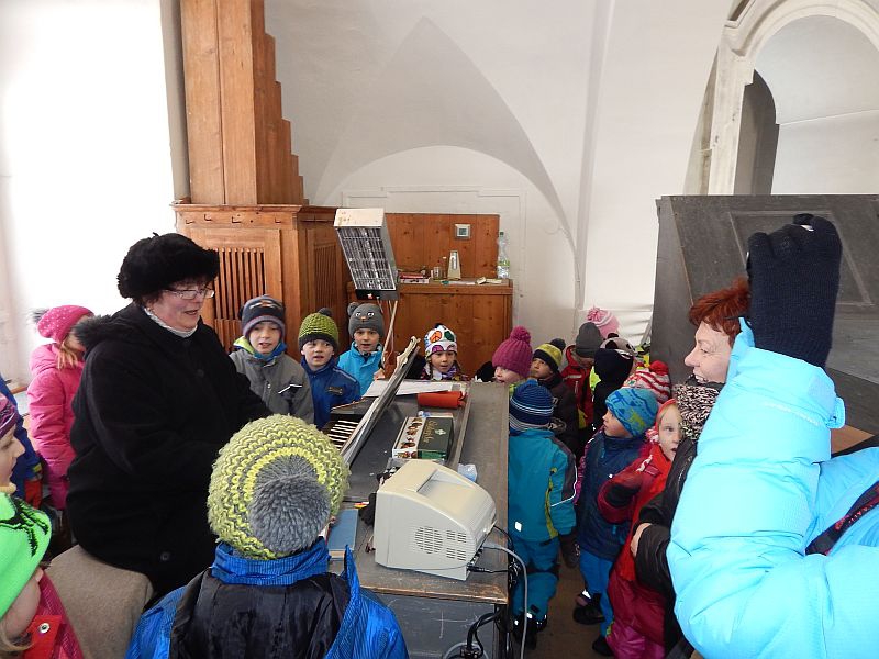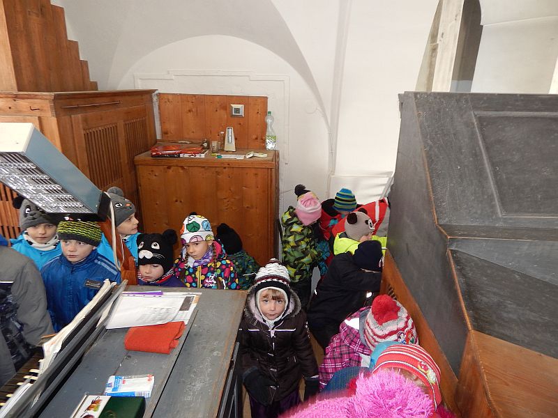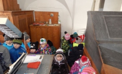 V úterý 19.ledna jsme se šli společně se školkou podívat do vánočně vyzdobeného kostela svatého Prokopa u nás na Bezděkově. Paní Gennertová nás ve zkratce seznámila s jeho historií a upozornila nás na zajímavosti, které tvoří jeho výzdobu. Pak jsme vystoupali po točitých schodech až k varhanám a zde jsme jednak viděli kostel pěkně z výšky a též jsme si zazpívali za doprovodu varhan několik vánočních koled. Po této kulturní vložce šla školka na vycházku a školáci měli jedinečnou možnost vystoupat druhými točitými schody až do věže, kde jsou umístěny zvony a hodinový stroj. Stihli jsme odbíjení v jedenáct hodin. Každý měl možnost pozorovat, jak se stroj roztočí, ozubená kola přesně do sebe zapadají. Někteří chlapci zase byli zvědaví, jak se posouvají závaží, díky kterým celý stroj funguje. Po tomto úžasném zážitku jsme se vrátili do školy. Nesmíme zde zapomenout poděkovat všem, kteří nám návštěvu kostela umožnili – pí Gennertové, pí Kristové a p. Vernerovi.