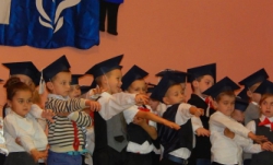 Po občerstvení jsme společně s žáky druhých a třetích tříd přešli do kulturního domu, kde probíhala samotná slavnost skládání slibu. Dětí v první třídě bylo 51 a každý musel před rodiči a prarodiči složit zkoušku školáka. Ta spočívala v recitaci básničky a ve zpěvu společných písniček. Na závěr děti společně odříkaly slib školáka a pak zase rodiče odříkali slib rodičů, že pomohou dětem dobře studovat a zajistí jim všechny podmínky, aby svá studia řádně dokončily. Po skončení slibu dostali všichni prvňáčci velký kornout se sladkostmi. My jsme během vystoupení školáků mohli ochutnávat výborné buchty, ovoce a pít džus.