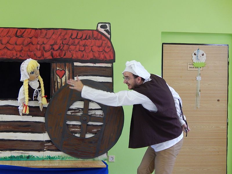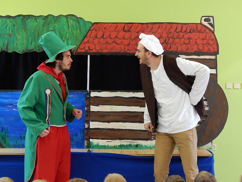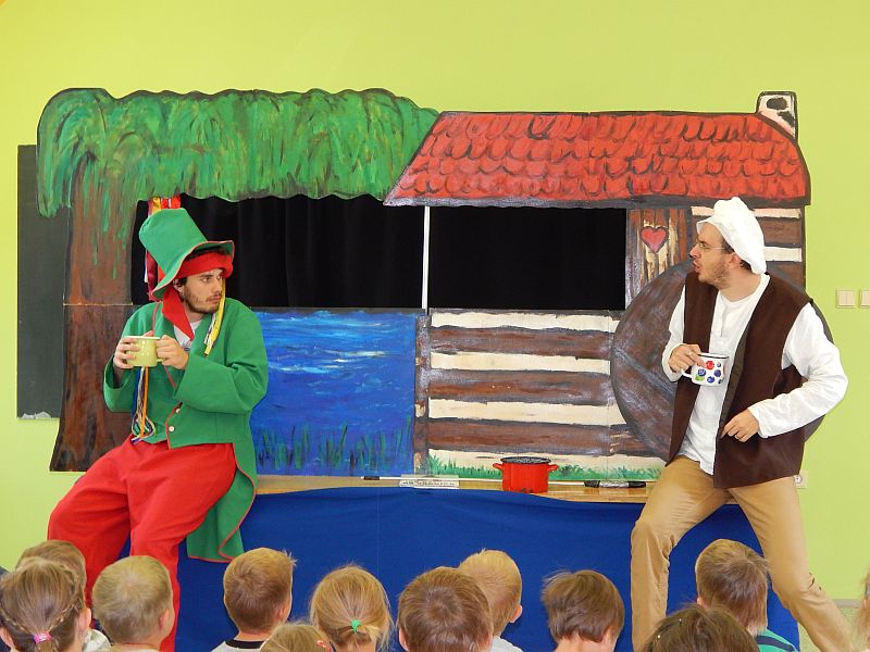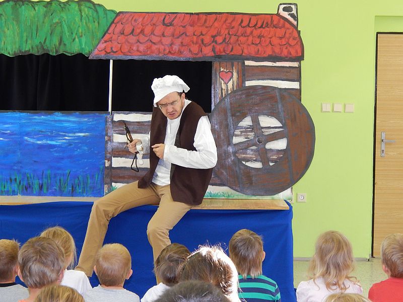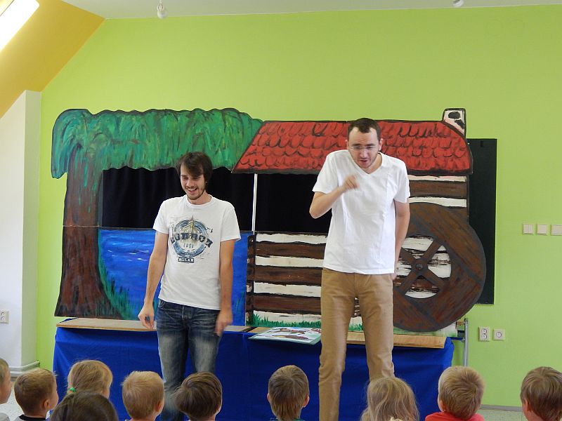 V pondělí 14.9. 2015 k nám přijeli herci Divadélka pro školy z Hradce Králové s Pohádkou ze starého mlýna aneb nebojte se hastrmanů.Pohádka vyprávěla o starém vodníkovi a mlynáři, kteří spolu vedli stálé spory.