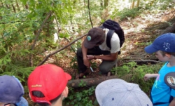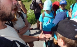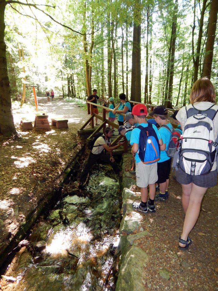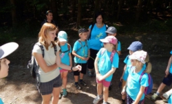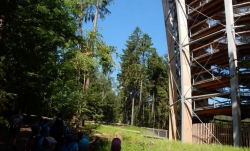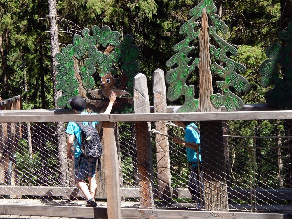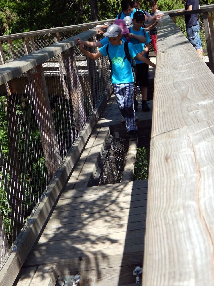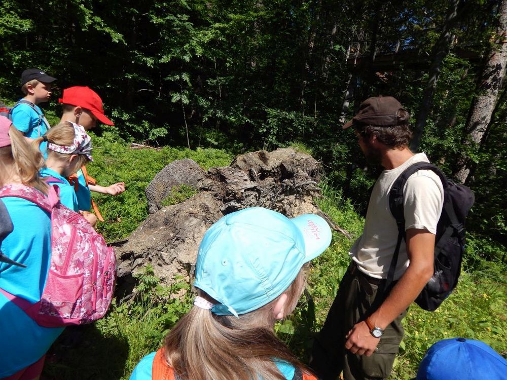 Procházka začala u dolní stanice lanovky na Černou horu. Po seznámení představení jsme vyšli značenou cestou ke Stezce. Cestou jsme pozorovali brouky, rostliny, larvy, poslouchali zpěv ptáků a snažili se odpovědět na otázky pana lektora. Ten nám sděloval velmi zajímavé informace. Dozvěděli jsme se spoustu zajímavostí o lese i jeho obyvatelích, hledali jsme vyklíčená semínka jedlí, ukázal nám, jak vypadá larva kůrovce i samotný kůrovec. Objevili jsme i první houby. Společně jsme došli ke vchodu na Stezku korunami stromů a při stoupání po jejich cestičkách jsme měli možnost si ověřit, co jsme si z pozorování v lese zapamatovali. Na vrcholu Stezky jsme ještě využili interaktivní hodiny se zvuky našich ptáků. Pak již se s námi pan Tlakač rozloučil.