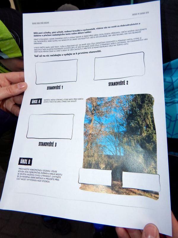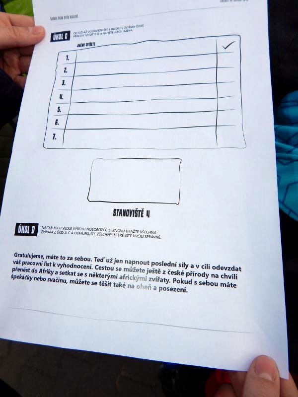 Po přivítání jsme obdrželi mapu a pracovní listy s úkoly. Podle mapy jsme museli najít stanoviště, splnit zadané úkoly, získat razítko a ještě se pozorně dívat kolem sebe. Úkoly na stanovištích byly doplněny dalšími úkoly.