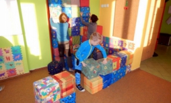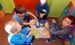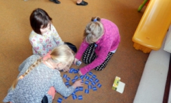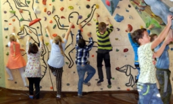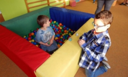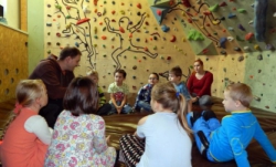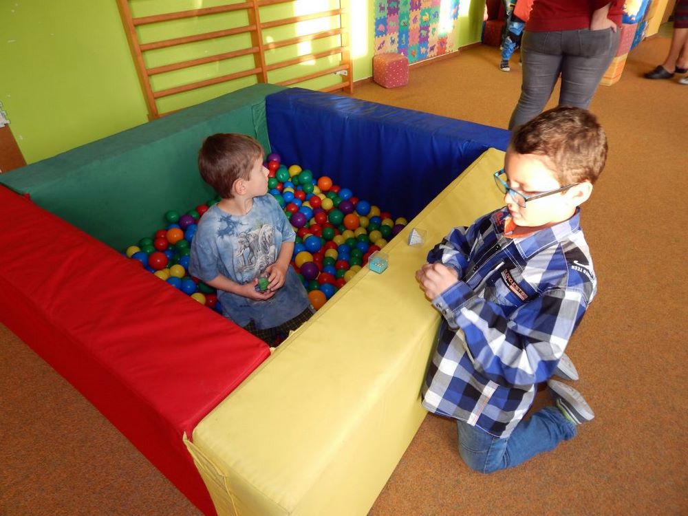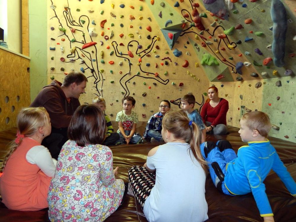 Zázemí jsme našli v DDM Domino, které nám umožnilo strávit zde čas před představením. Rozdělili jsme se na dvě poloviny. Jedna byla v herně, kde si krátila čas skládáním hradu, plaváním v kuličkách a hraním pexes nebo opiček. Druhá pak šla na boulderingovou stěnu, kde zkoušela základy lezení. Po 45 minutách jsme se vyměnili.