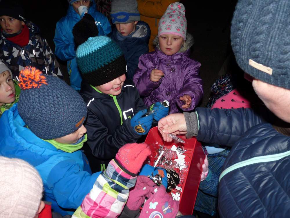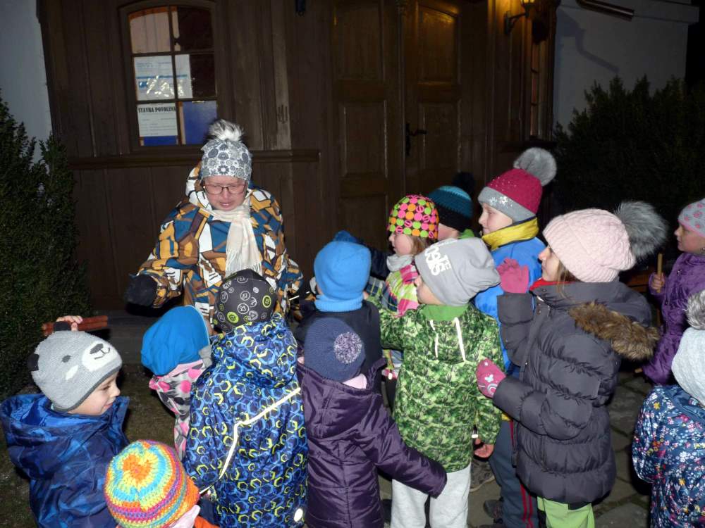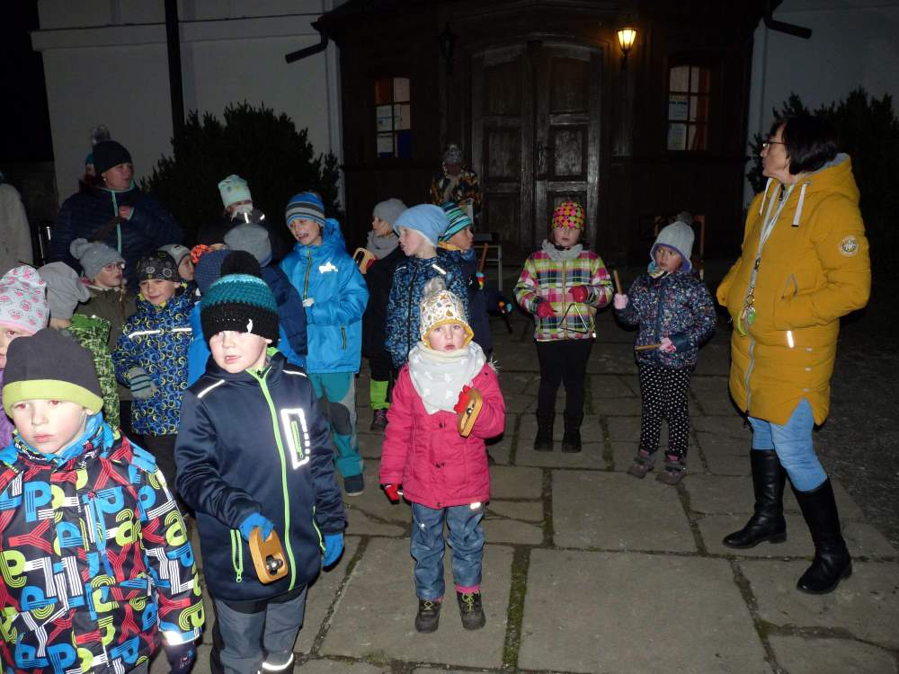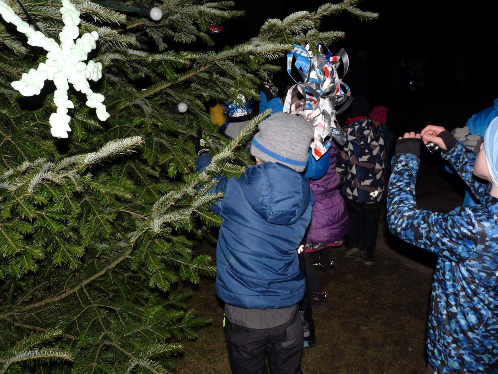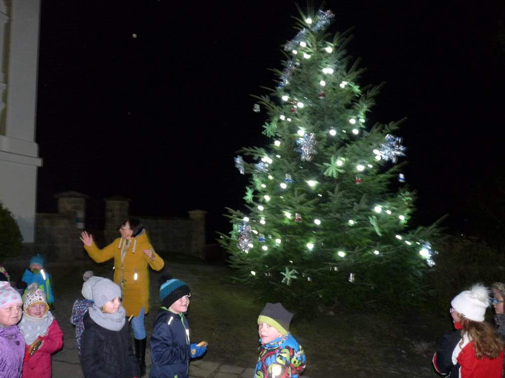 V podvečer jsme se nejprve prošli s lucerničkami kousek po vesnici, pak jsme každý zavěsili na strom jednu malou ozdobu. Po té jsme zakouzlili a pomocí čar a kouzel stromek rozsvítili. Zazpívali jsme si několik koled, které nám zahrála paní Vrabcová. A nakonec nám zahráli na trumpety kluci Němcovi s Tomášem Zákravským.