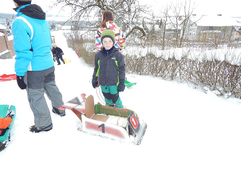 Konečně máme pořádnou zimu a tak jsme uspořádali ve čtvrtek 12.1.2017 Sjíždění kopečka na čemkoli. Na startu se sešlo 20 vozidel. Mezi sáňkami a pekáči upoutala pozornost nafouknutá pneumatika a formule vyrobená ze zeleninové bedýnky.