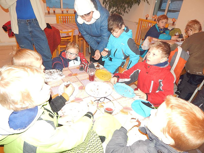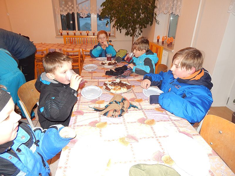 Všichni účastníci bravurně zvládli všechny nástrahy tratě, bez jediné chybičky sjeli kopeček, projeli brankami i utrhli fáborky pověšené na provázku. Doplňkovou disciplínou byl hod koulí do terče na stromu. Zahřát jsme se šli do školní jídelny, kde na nás čekal čaj a upečená buchta. Za odměnu dostal každý soutěžící diplom a zlatou medaili v podobě sušenky Fidorka.