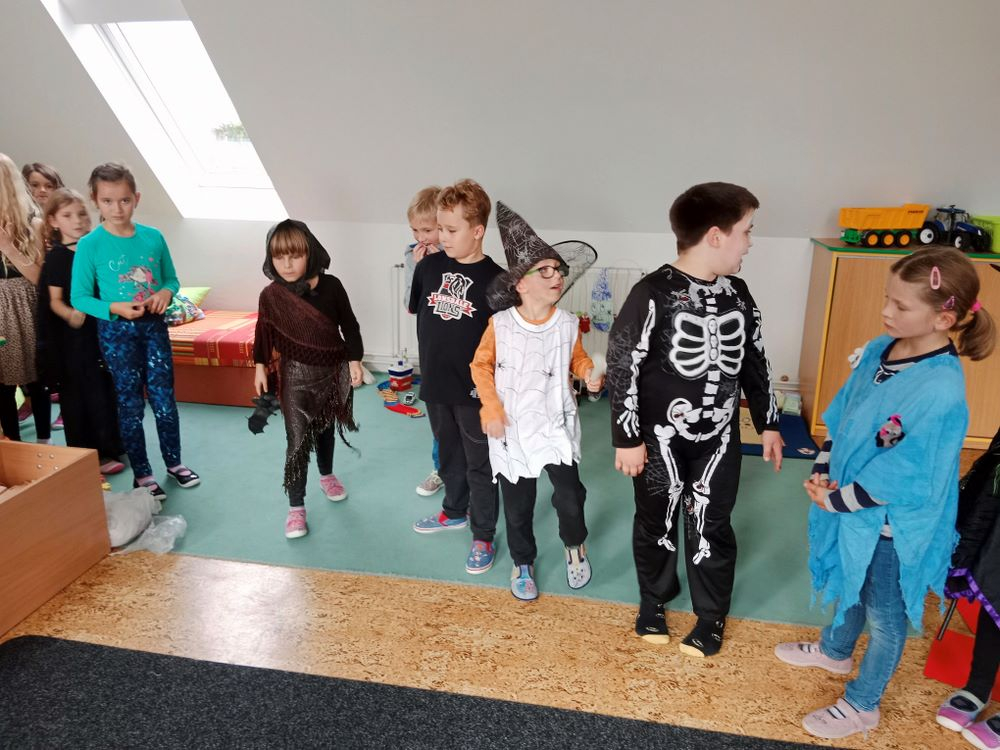 V úterý 25. října jsme ve školní družině uspořádali Halloweenskou slavnost. Oblékli jsme se do strašidelných masek a převleků, přinesli s sebou různé strašidelné rekvizity a také samozřejmě nějaké dobroty, které ke každé párty patří.