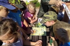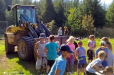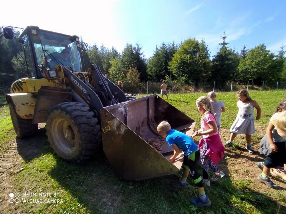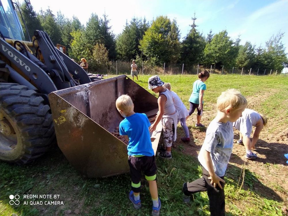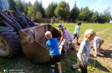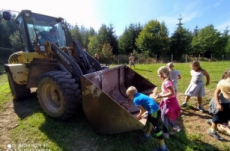 V poslední části programu jsme dostali možnost si prakticky vyzkoušet práci zaměstnanců lesní školky. Všichni společně jsme se pustili do vybírání kamenů na poli, které bude sloužit k pěstování nových sazeniček. Žáci měli velkou radost především z toho, že mohli nasbírané kameny vhazovat přímo do lžíce bagru, který přijel dětem také svou práci představit.