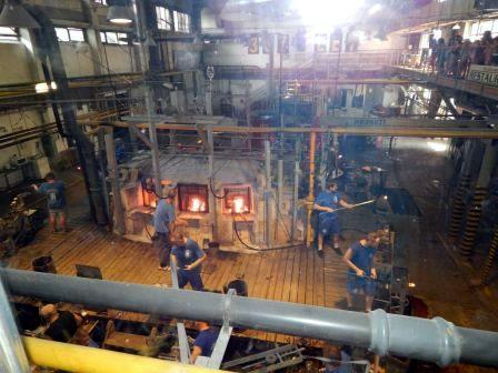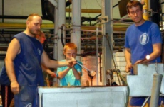 V první části programu jsme absolvovali prohlídku provozu sklárny, navštívili jsme huť, kde skláři ze skloviny foukali různé druhy sklenic, měli jsme možnost sledovat výrobní postup od nabrání skloviny z pánve sklářskou píšťalou, přes vlastní foukání, tvarování ve formách, chlazení až po konkrétní hotové výrobky.