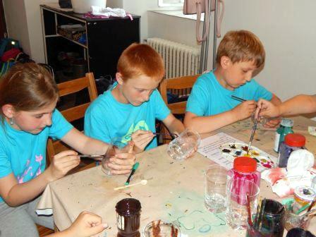 Po prohlídce muzea jsme navštívili kreativní dílnu, která se nachází ve stejné budově. Pro každého žáka jsme zakoupili sklenici, na kterou poté měli žáci možnost vyzkoušet si rytí do skla malou bruskou podle vlastní předlohy, malování barvami na sklo, dobarvení gravírovaného obrázku na sklenici. Poté nám paní všechny naše sklenice nechala v peci zapéct aby barva na skle držela. Čas strávený v dílně jsme si moc užili, bavilo nás vyzkoušet si práci s bruskou, měli možnost využít naši fantazii a kreativitu při malování a broušení vlastního obrázku.