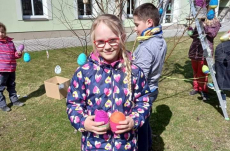 Při výtvarné výchově jsme si dali pořádnou práci s výrobou motaných kraslic, které jsme pečlivě omotávali barevnou vlnou. Ve družině jsme se také pilně věnovali malování kraslic a plastových vajíček.