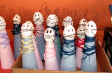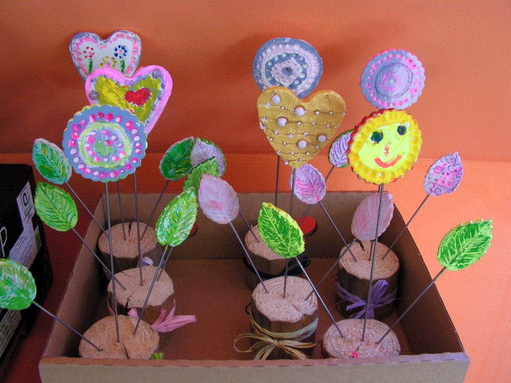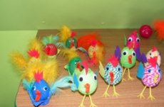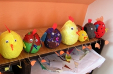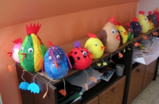 Vyrábění nás bavilo, snažili jsme se vytvořit nápadité a trochu netradiční výrobky a tak vznikala kašírovaná kuřátka a slepičky, zajíčci, různé zápichy, výrobky ze samotvrdnoucí hmoty atd.