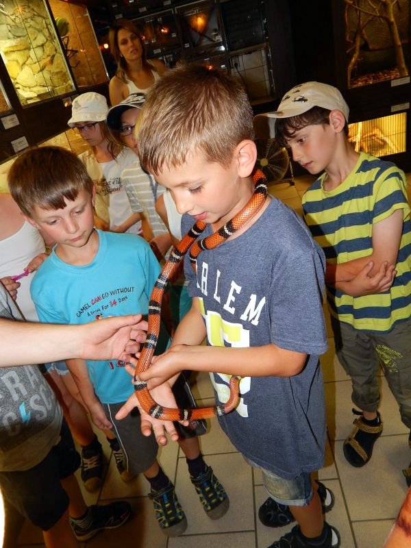 Když jsme se pokusů nabažili, navštívili jsme Zoo-koutek v ZŠ Bezručova. Zde jsme měli možnost vidět opice, želvy, hady, papouška, rybičky a další zvířátka. Na některá jsme si mohli i sáhnout. Cestou zpět na Bezděkov jsme si vyměňovali pocity a zážitky z prožitého dne.