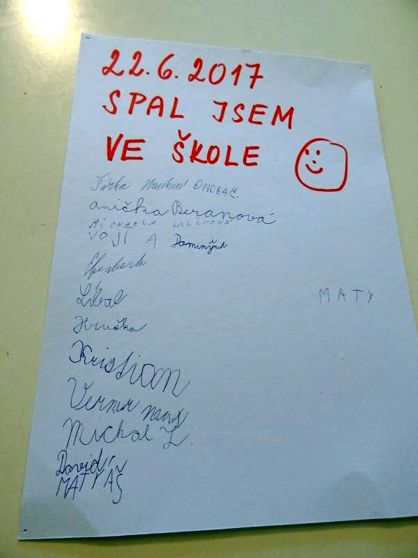 Výlet i spaní se nám moc líbili a domů jsme odcházeli spokojeni. Teď nás již čeká jen úklid třídy, ukončení školy a samozřejmě prázdniny, na které se všichni velmi těšíme.
