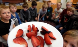 Ve čtvrtek 8. února jsme společně ochutnávali zeleninu a ovoce, které jsme dostali v rámci akce „Ovoce do škol“. Některé druhy jsme viděli poprvé v životě, některé jsme znali a těšili se na jejich chuť.