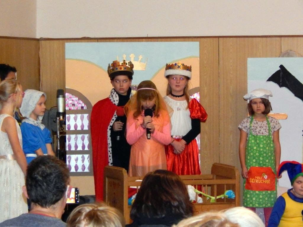 Za naším úspěchem je jistě nejen naše velká dřina, ale i vedení a nápady naší paní vychovatelky Beranové. Velký podíl má i pan školník, který namaloval a vytvořil krásné kulisy a pak i spolupráce s našimi rodiči, kteří donesli mnoho rekvizit, které jsme mohli použít.