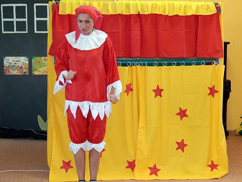 Hned ve středu 7.září k nám přijelo divadlo „Úsměv“ s pohádkou „O kamarádství“. V ní jsme názorně viděli, jak je ošklivé, když se někdo stále jen vytahuje, hádá se, neumí prohrávat, je sobecký a druhým jen ubližuje. Naštěstí měl Kuba opravdové kamarády, a když přecenil své síly a začal se topit, tak jej zachránili, přestože jim všem předtím ublížil. Tento zážitek Kubu napravil, kamarádům se omluvil a začal se chovat správně. Pohádka se nám všem velmi líbila.