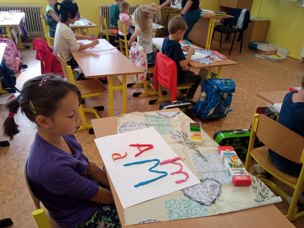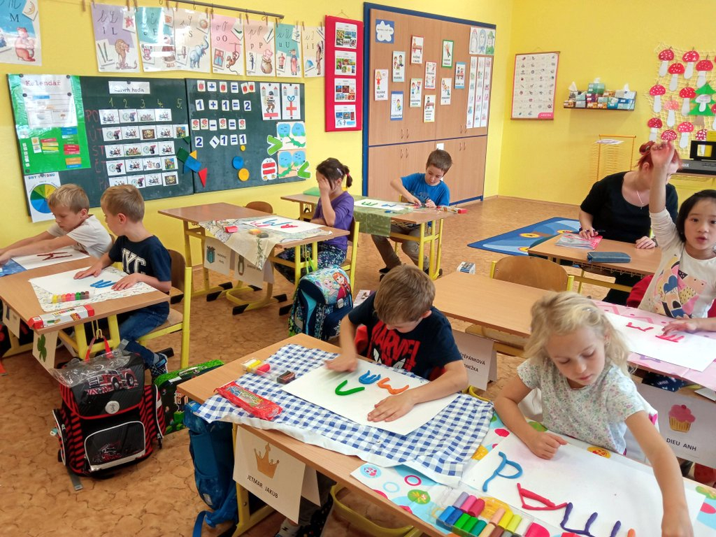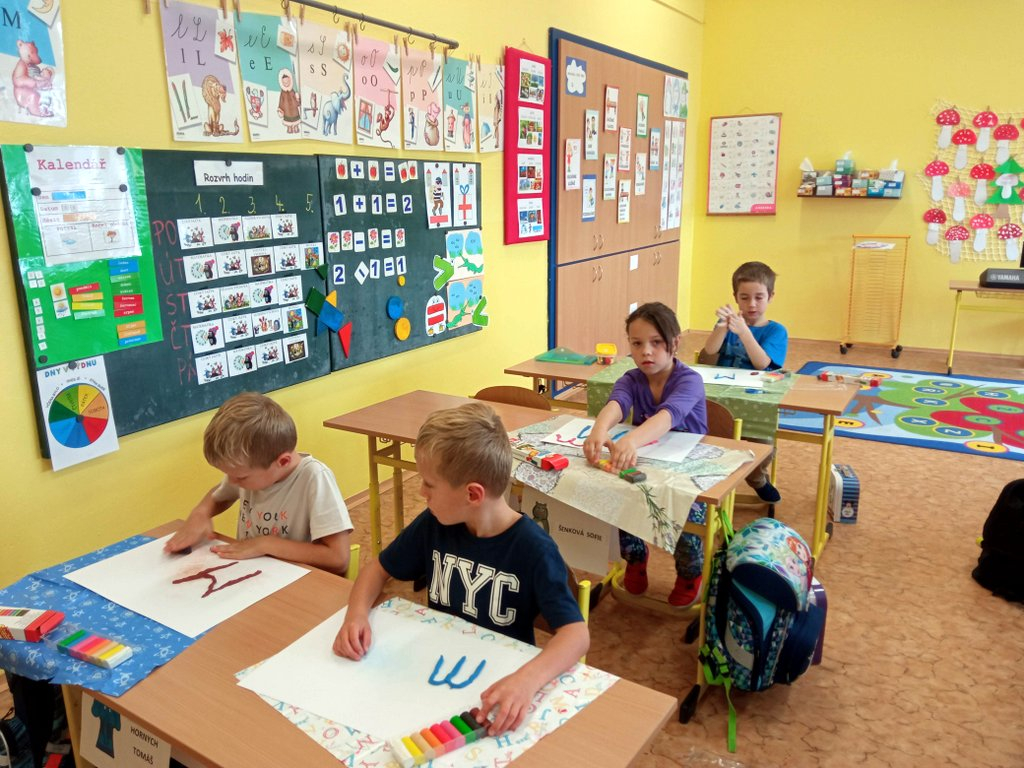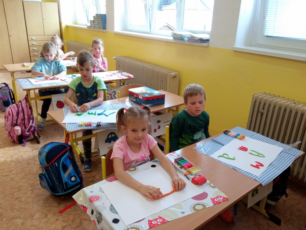 Prvňáčci se během prvních pár dní seznámili se školou a s nadšením se pustili do práce – uvolňování ruky, trénink psaní, seznamování se s prvními písmenky a čísly, no není toho málo. A že ve škole není jen dřina, ale taky zábava, tvoří a vyrábějí, zpívají a sportují…..