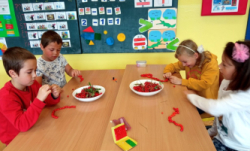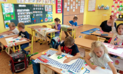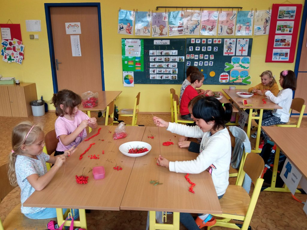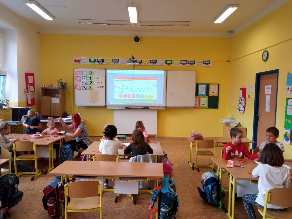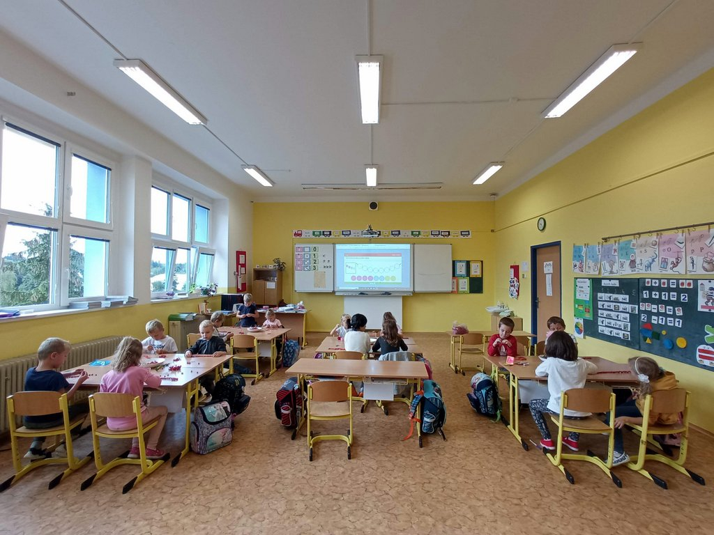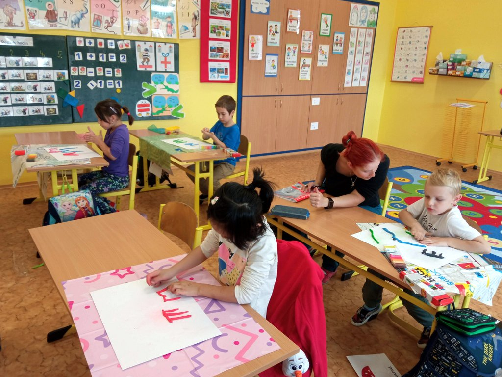 Prvňáčci se během prvních pár dní seznámili se školou a s nadšením se pustili do práce – uvolňování ruky, trénink psaní, seznamování se s prvními písmenky a čísly, no není toho málo. A že ve škole není jen dřina, ale taky zábava, tvoří a vyrábějí, zpívají a sportují…..