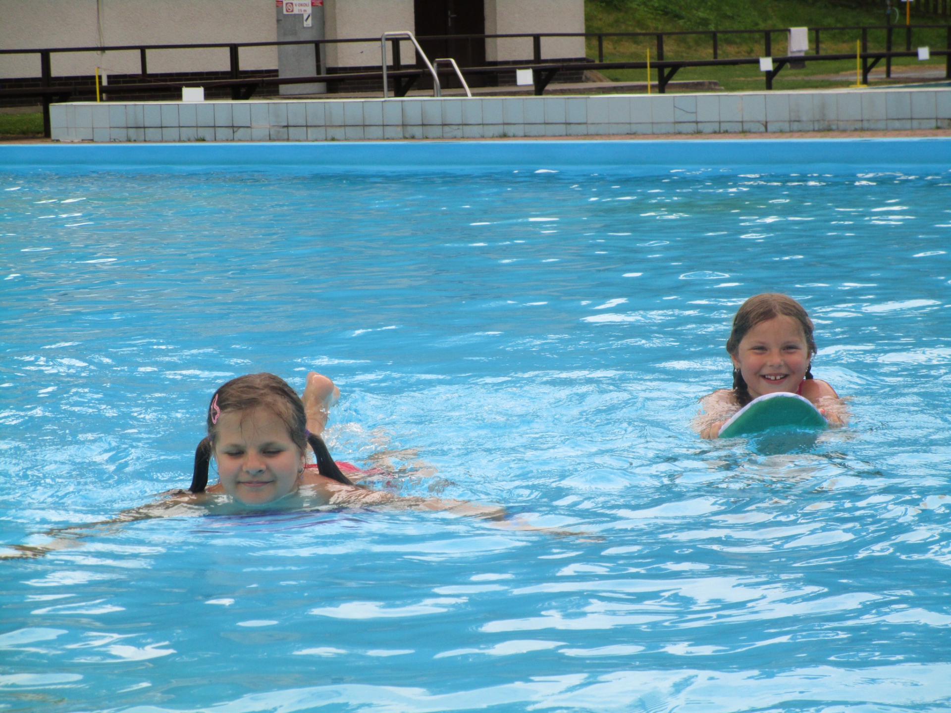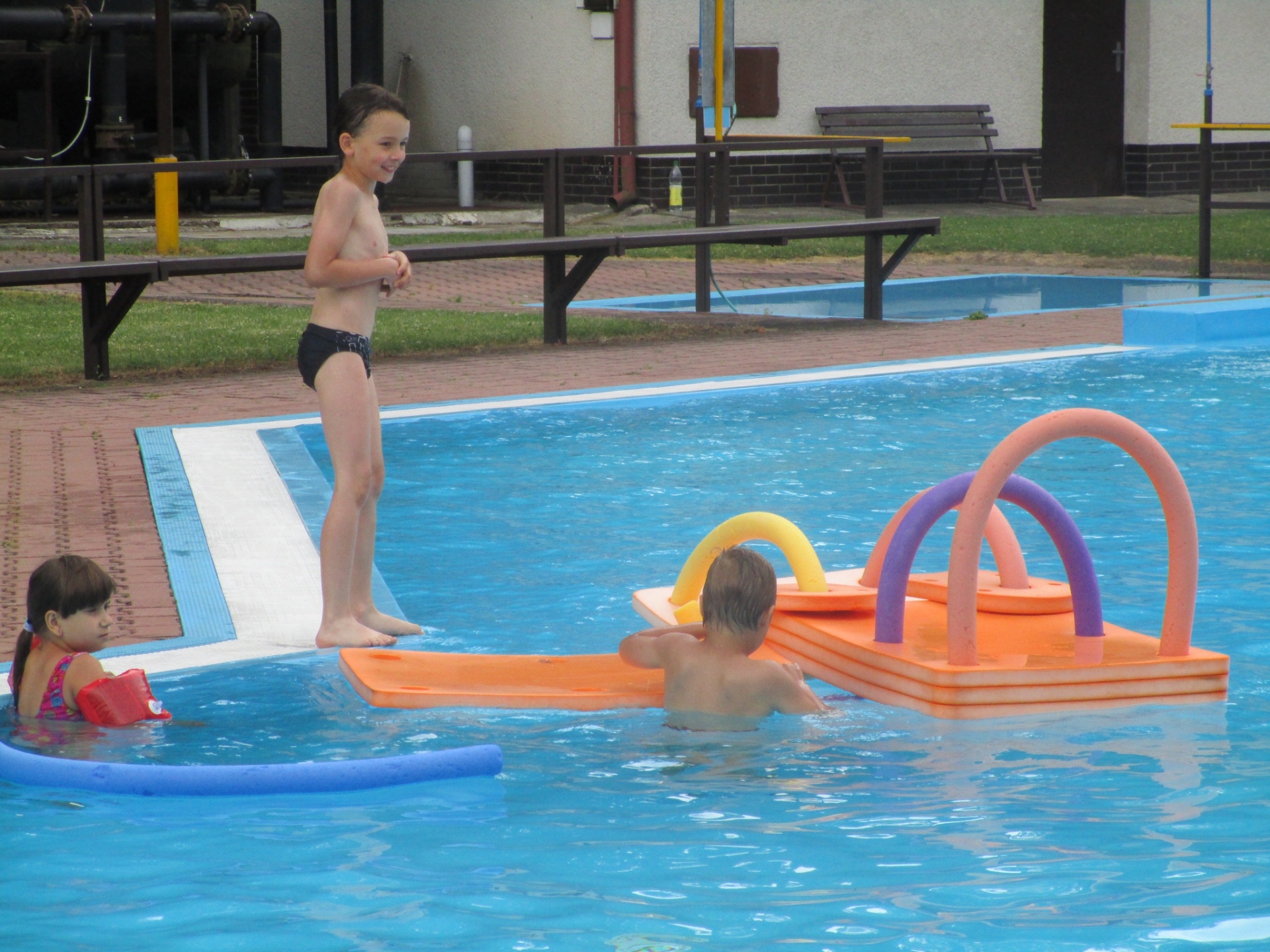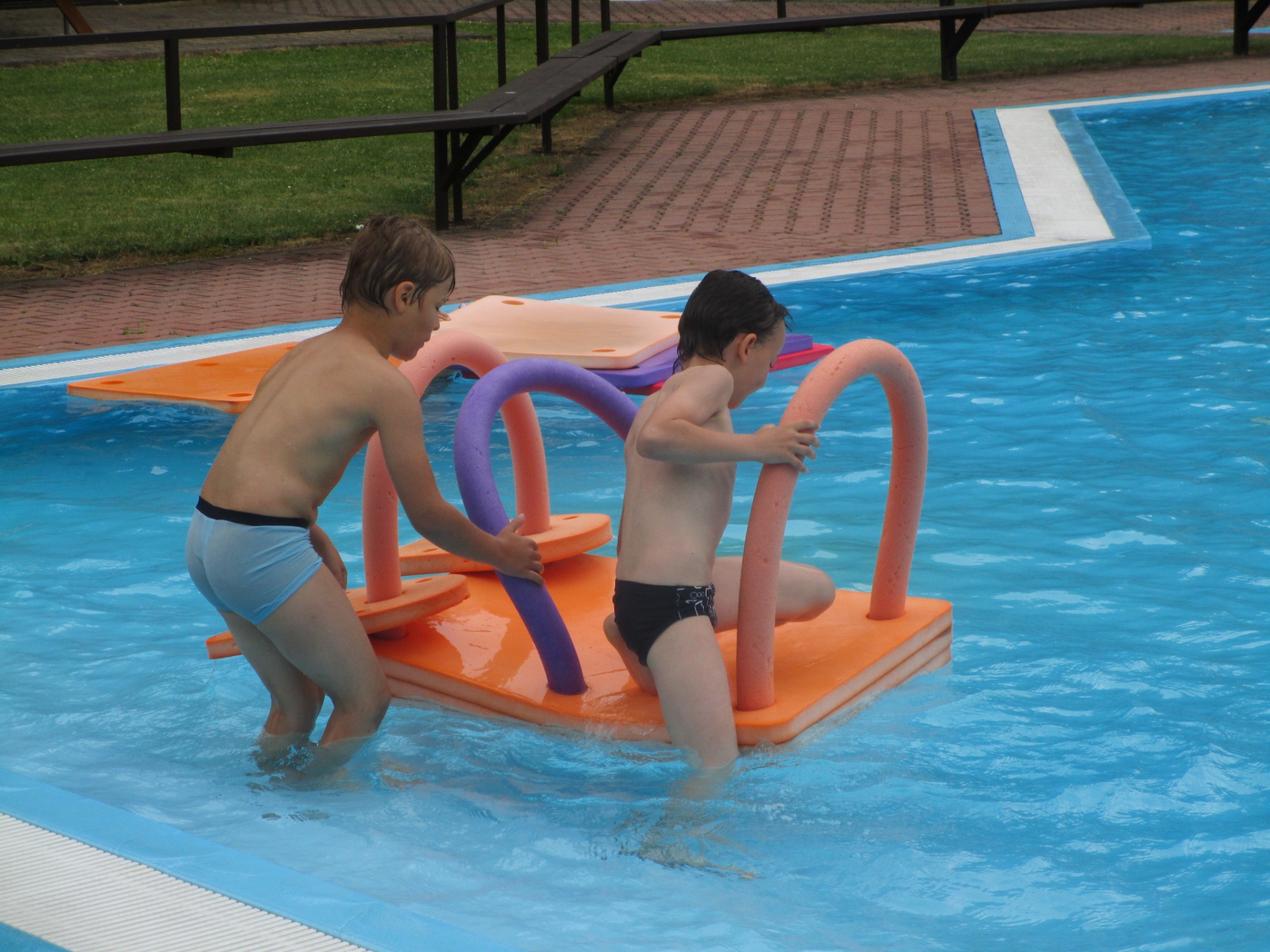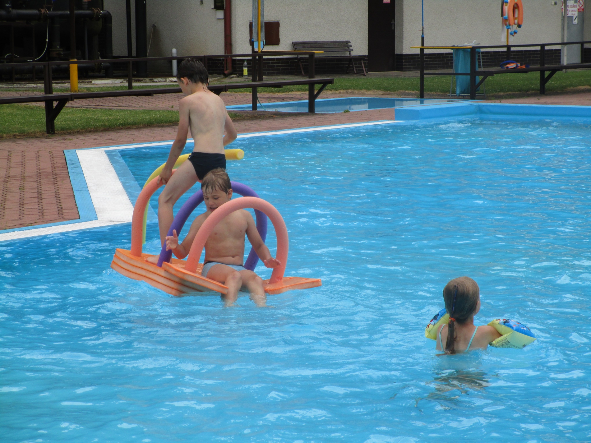Děti si užívaly vodních radovánek, skoků do vody a stavění člunů z pěnových desek. Na souši si zahrály fotbal, ping pong a karty. Moc se nám na koupališti líbilo a doufáme, že se sem brzy vrátíme.