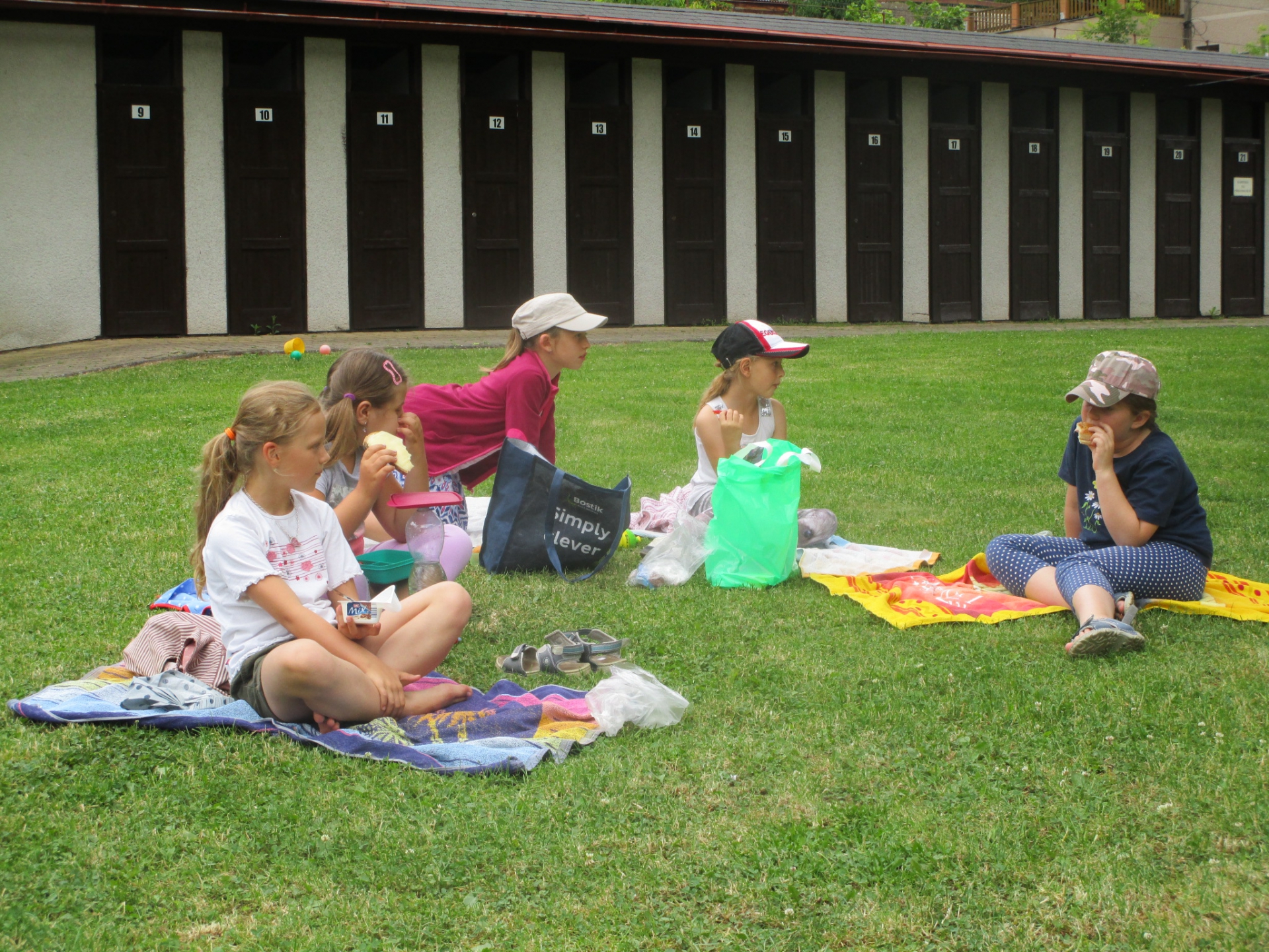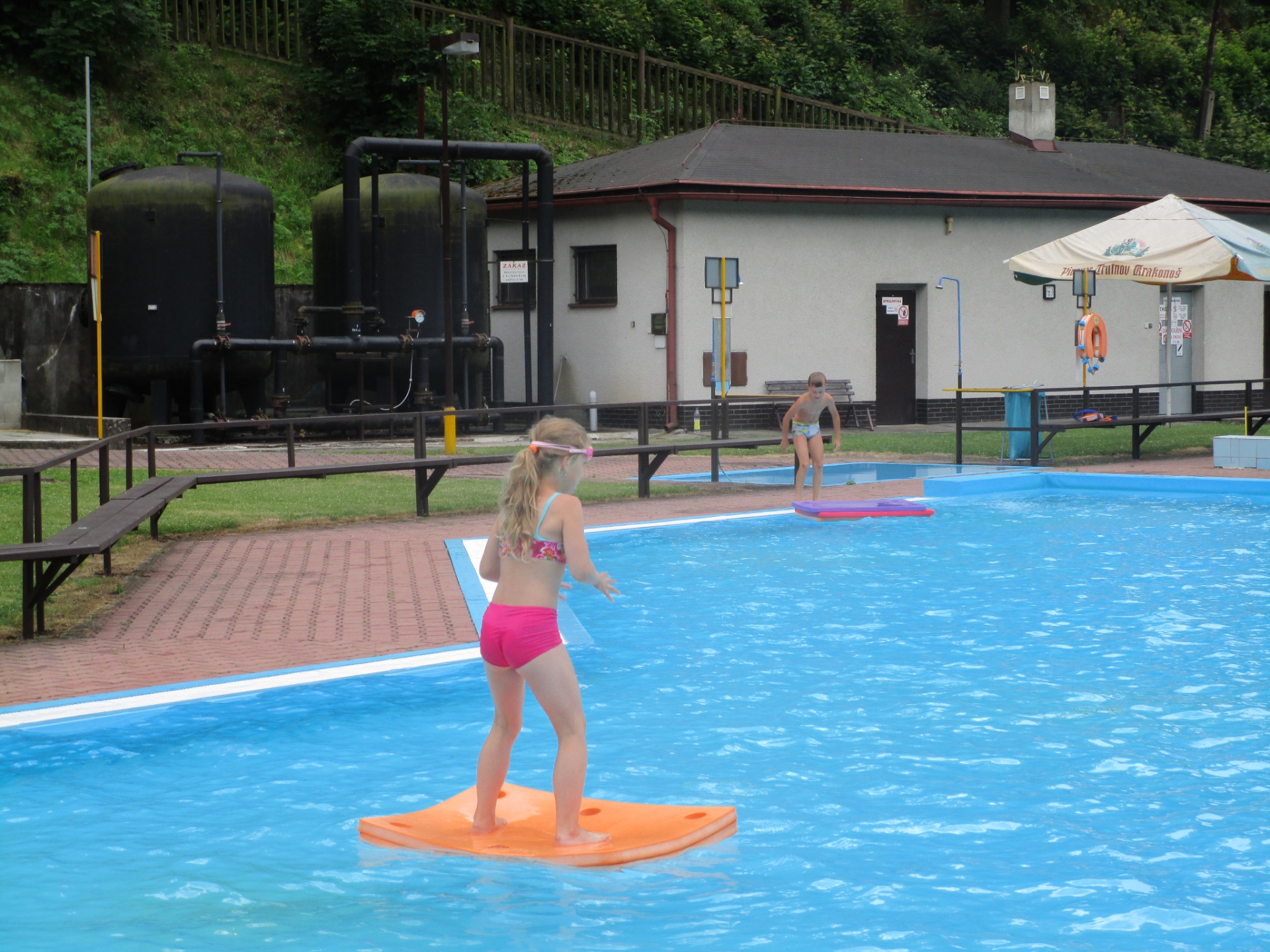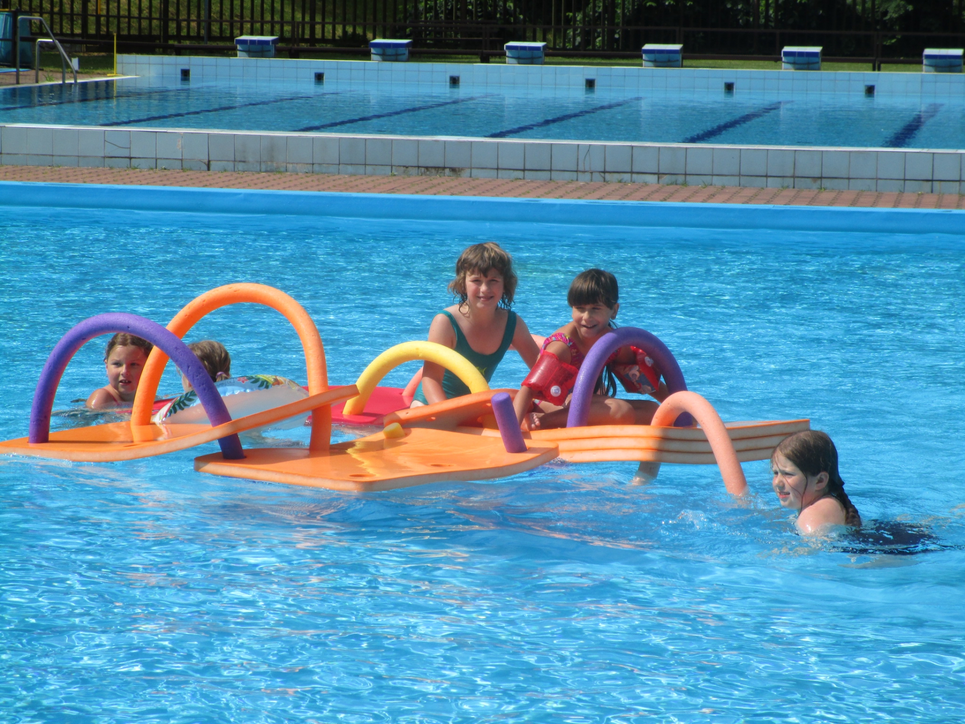 Děti si užívaly vodních radovánek, skoků do vody a stavění člunů z pěnových desek. Na souši si zahrály fotbal, ping pong a karty. Moc se nám na koupališti líbilo a doufáme, že se sem brzy vrátíme.