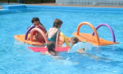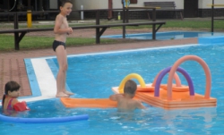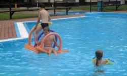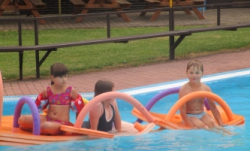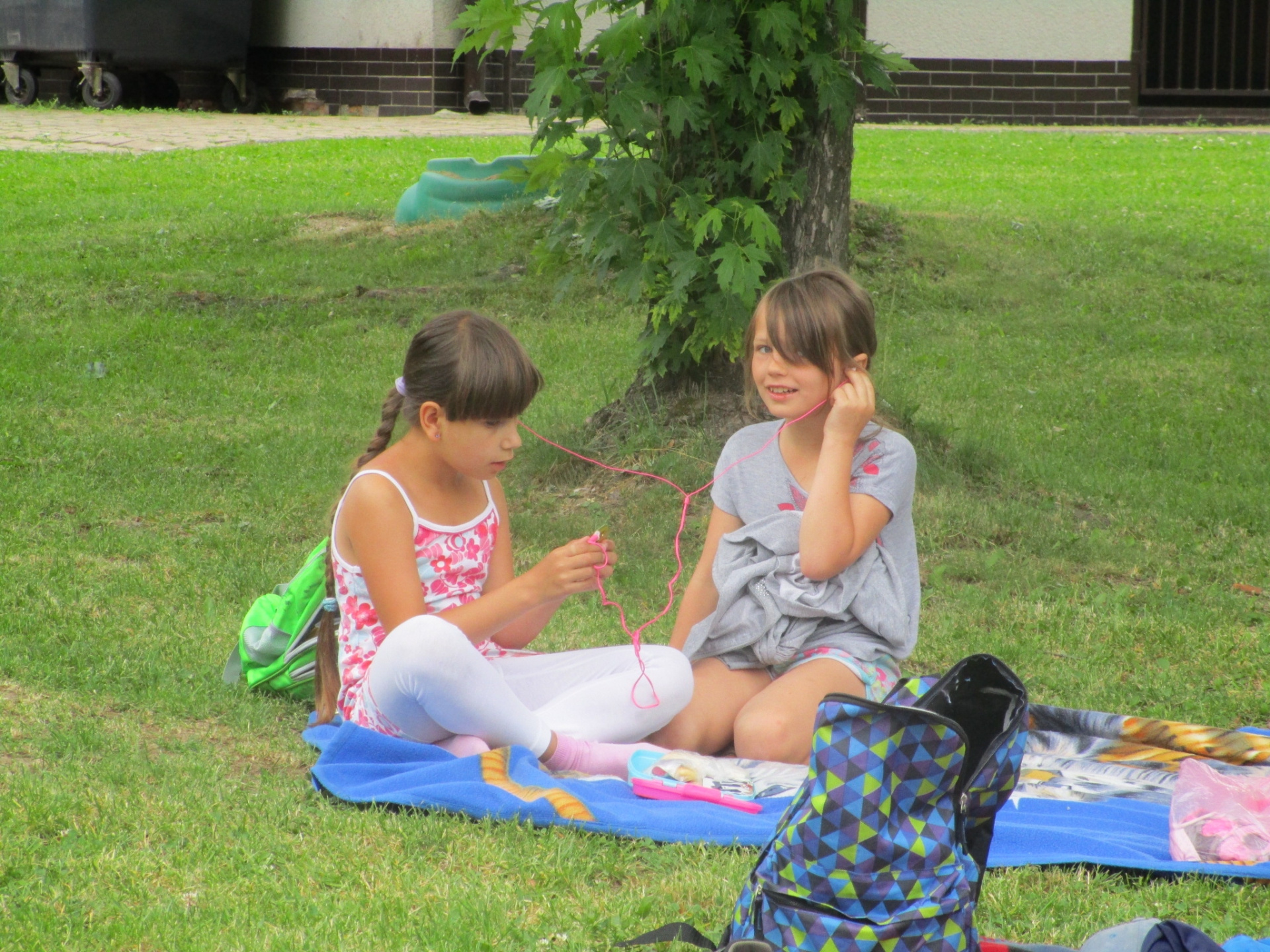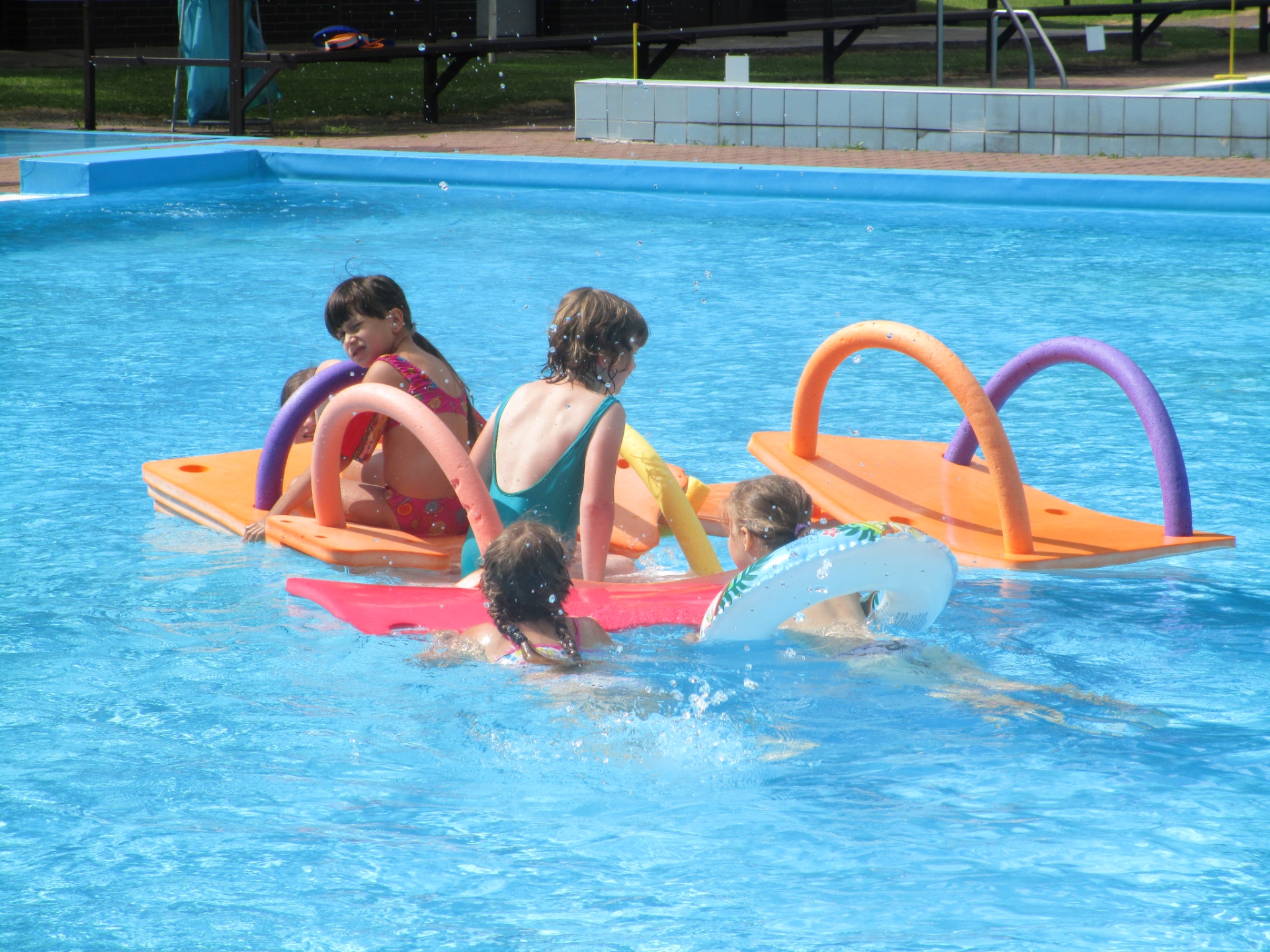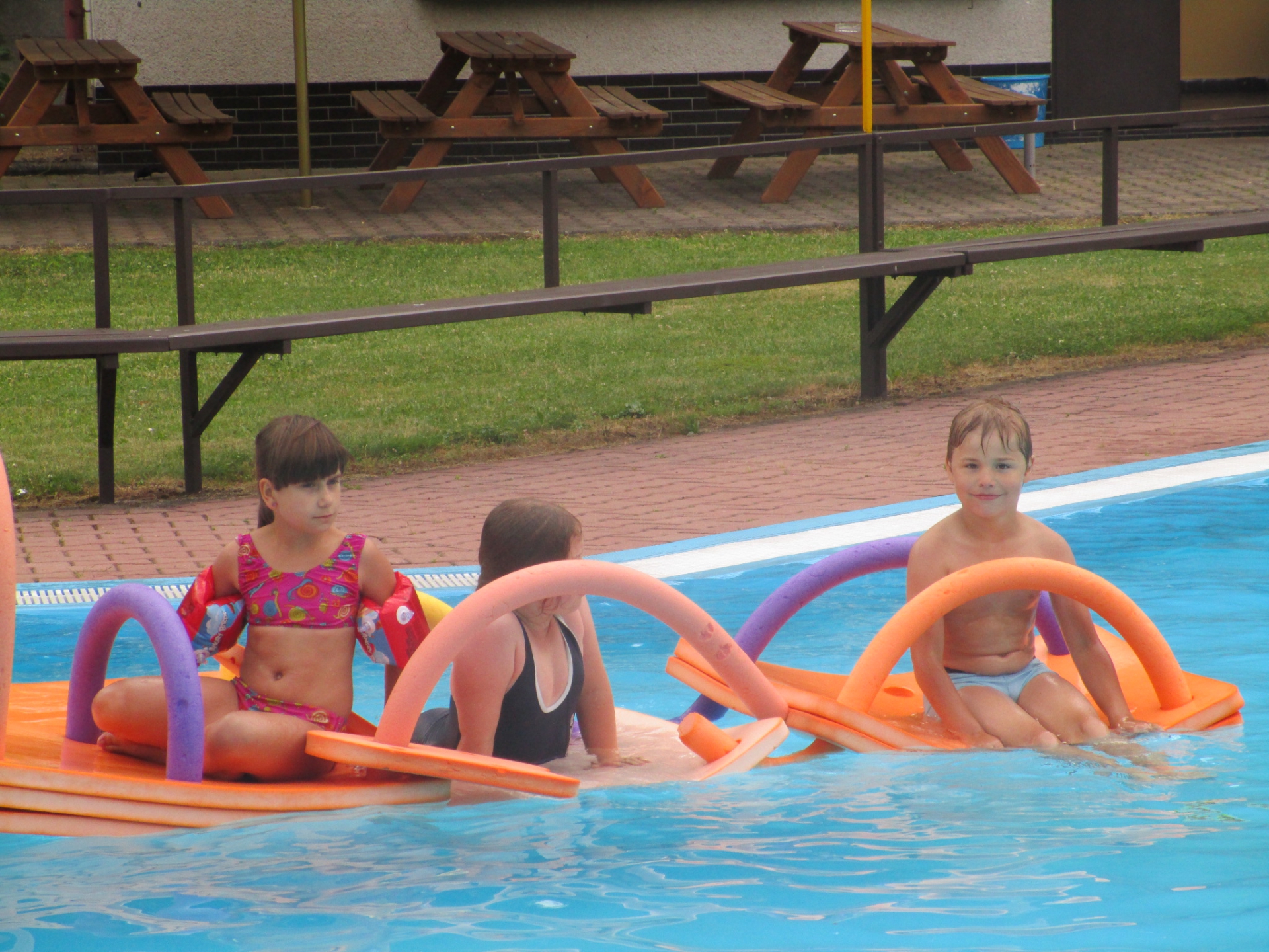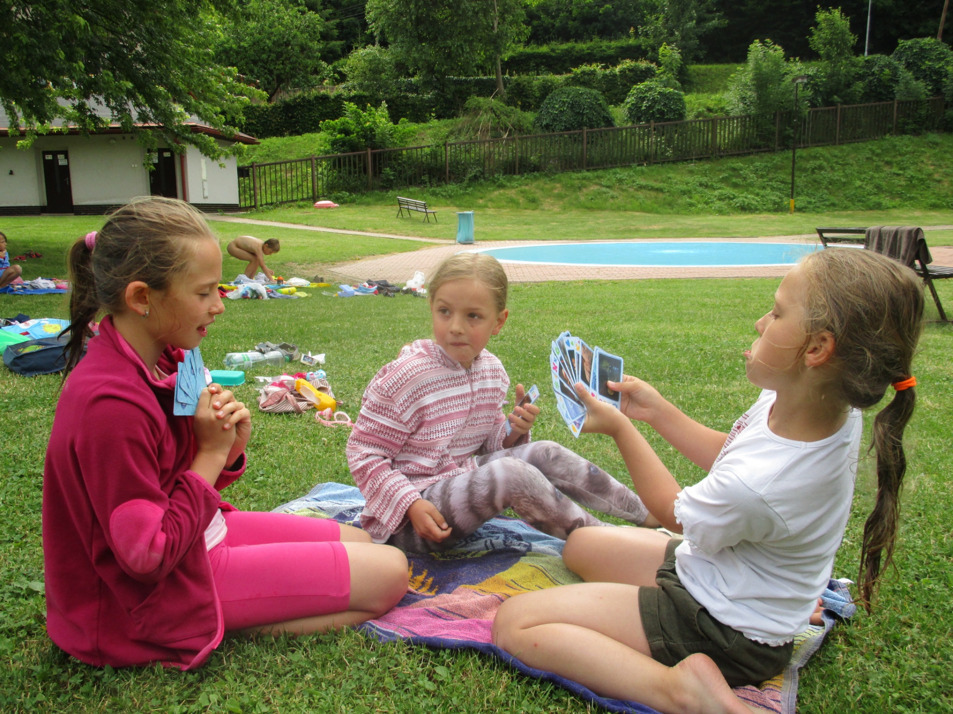 Děti si užívaly vodních radovánek, skoků do vody a stavění člunů z pěnových desek. Na souši si zahrály fotbal, ping pong a karty. Moc se nám na koupališti líbilo a doufáme, že se sem brzy vrátíme.