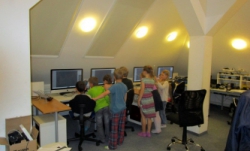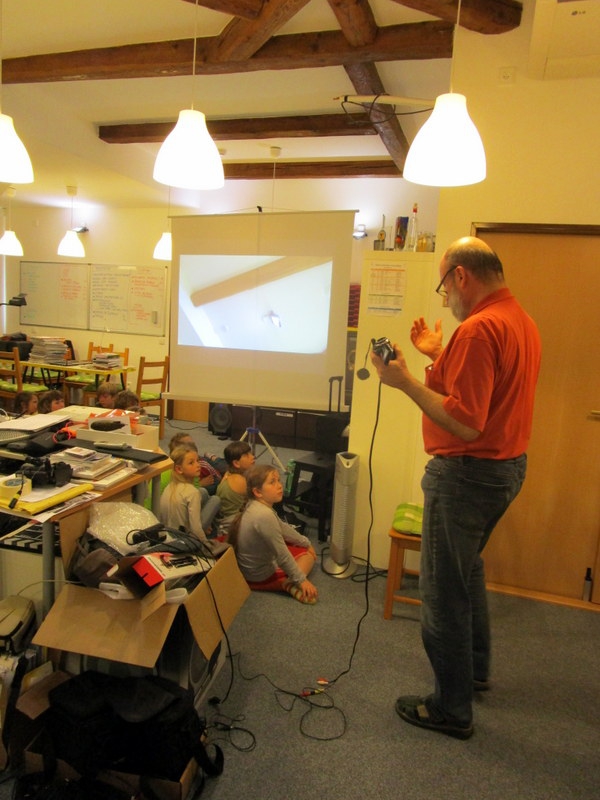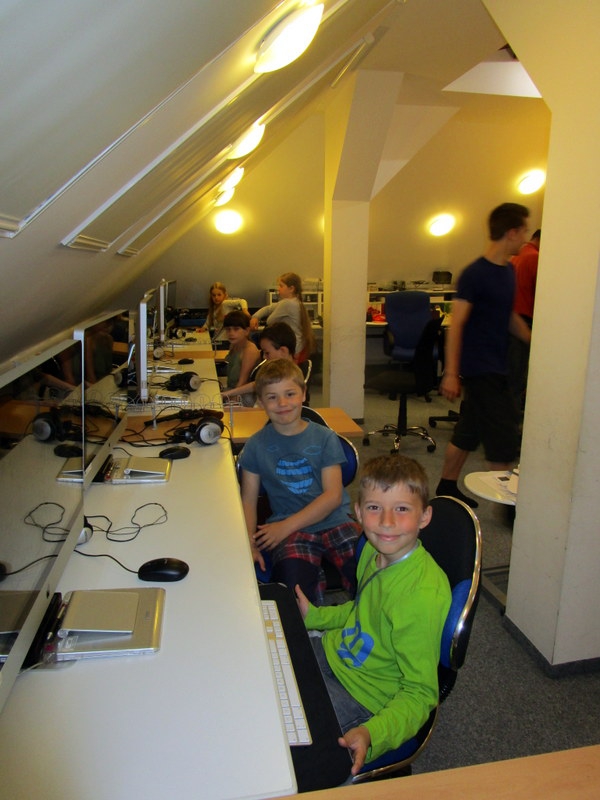 Pan Beran a jeho žáci pro nás připravili velmi poučný a zábavný program týkající se návštěvy v televizi. Děti si mohly vyzkoušet herecké role, natáčení kamerou, práci ve střižně. V druhé části návštěvy si děti na počítačích složily vlastní hudbu v programu GarageBand. Některé hudební ukázky byly opravdu velmi zdařilé. Děti byly z návštěvy nadšené a těšíme se na další spolupráci.