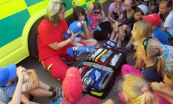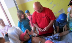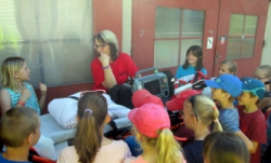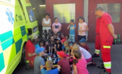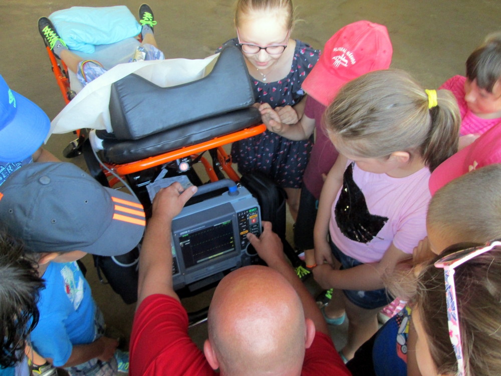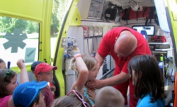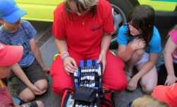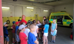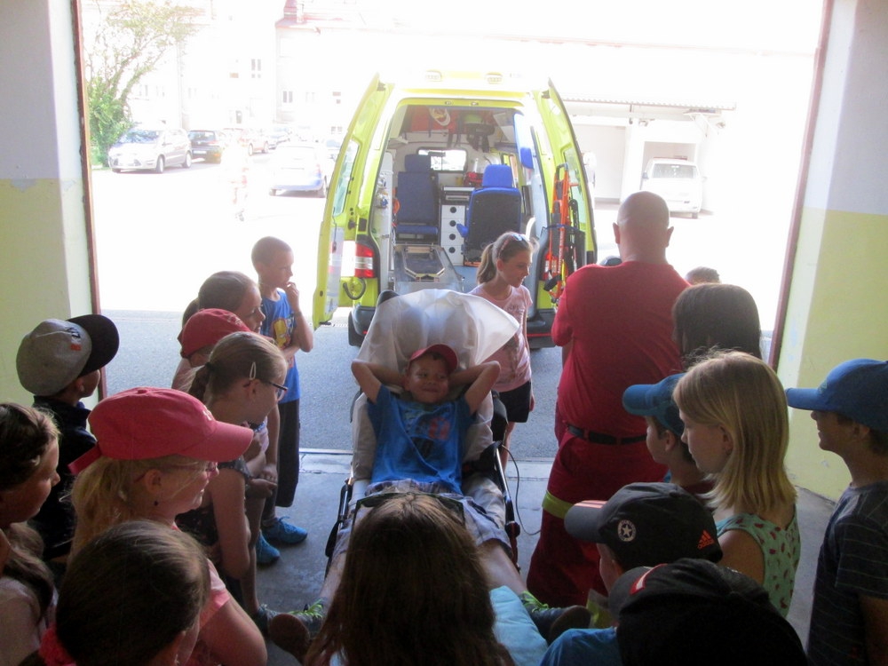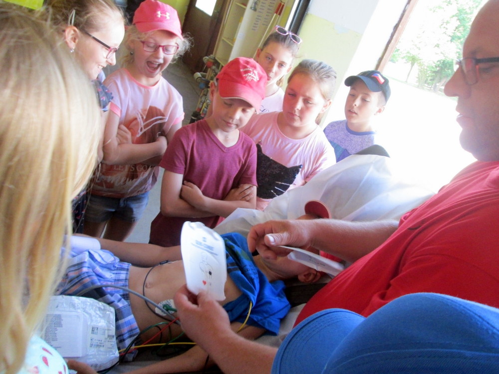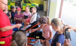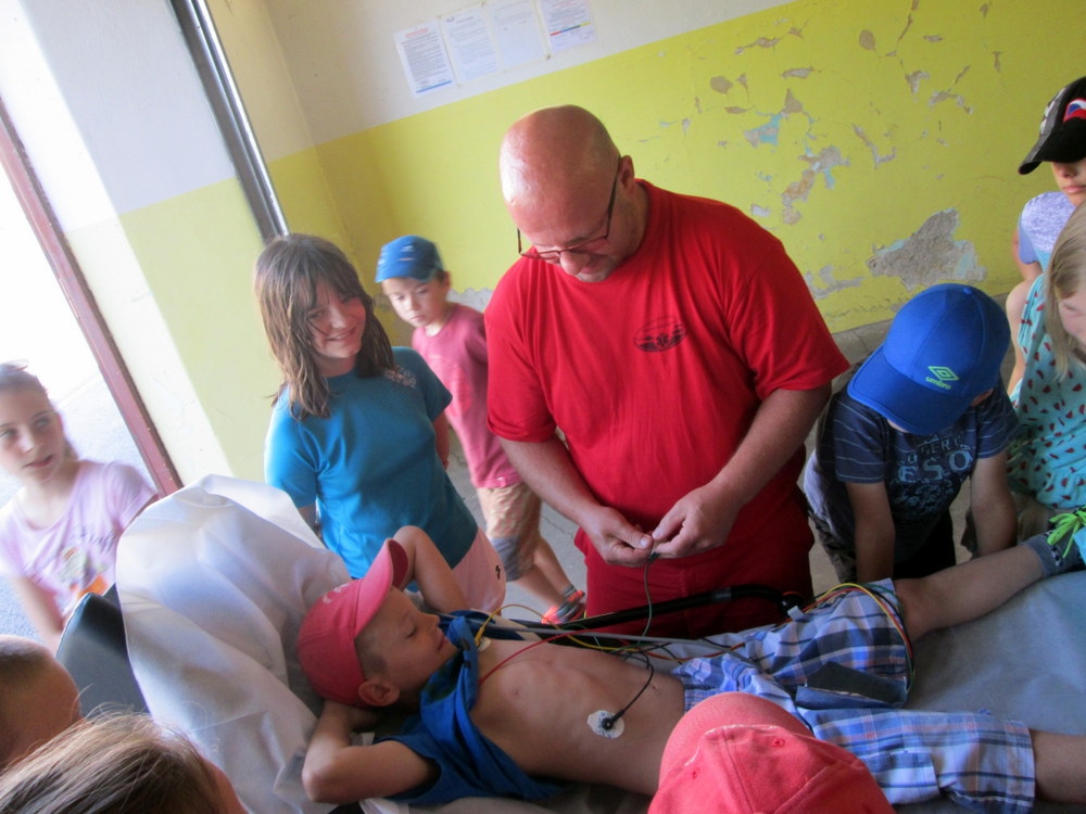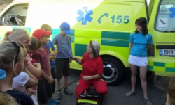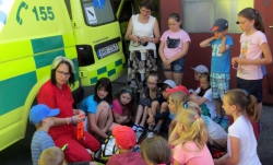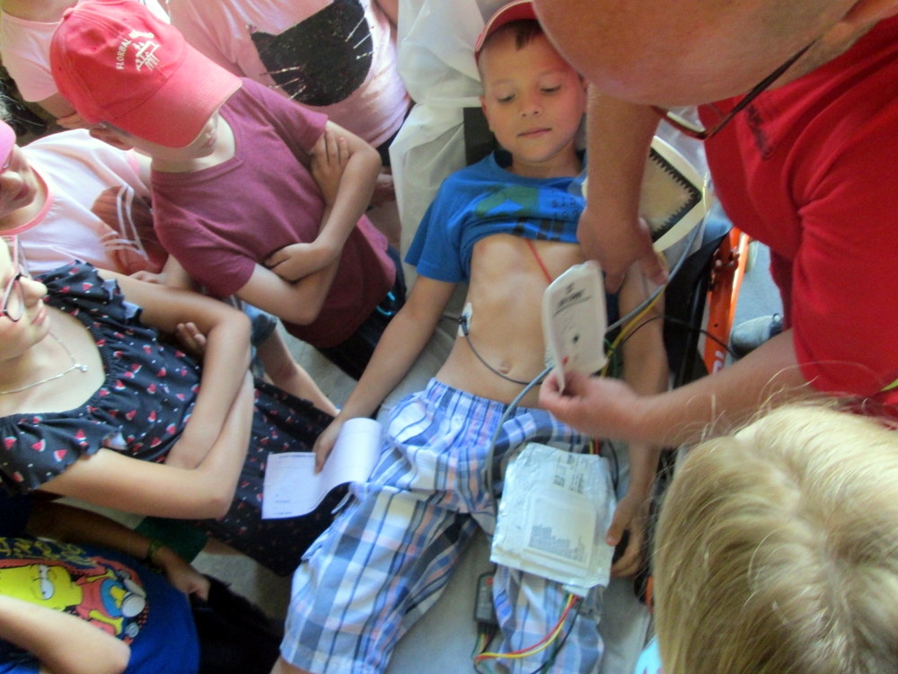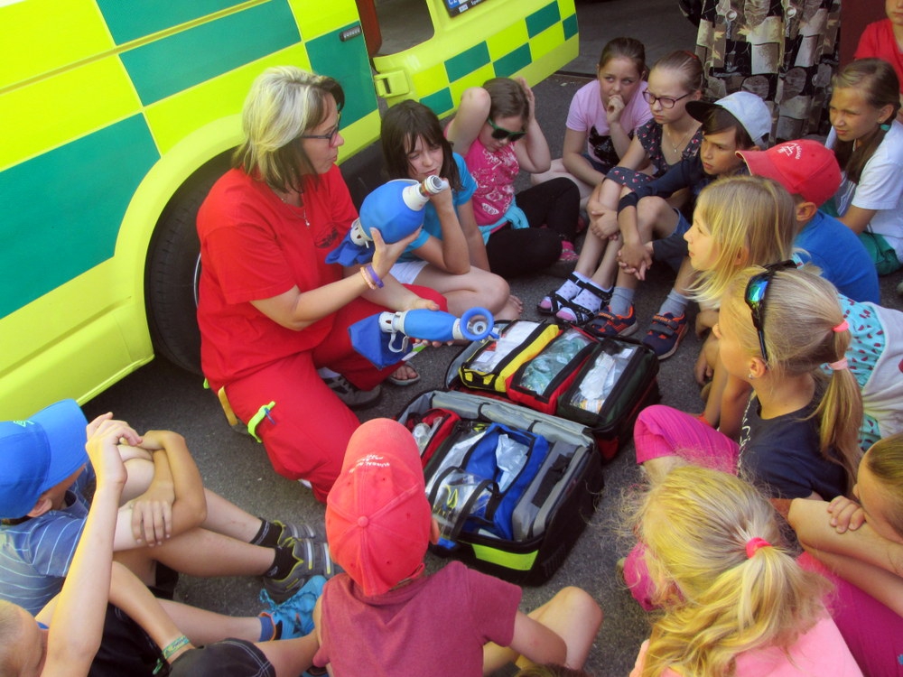 Zde nám záchranáři ukázali, s jakými pomůckami v terénu pracují, potěžkali jsme si jejich kombinovanou brašnu/batoh (2 v 1 J) se zdravotnickými potřebami, které berou s sebou na výjezdy a někteří žáci se nad tíhou až divili J…. Pan záchranář nám ukázal vybavení auta i téměř všechny důležité přístroje, vysvětlil nám, jak fungují a dokonce si někteří žáci mohli na vlastní kůži vyzkoušet, jaké to je ležet na lehátku a nechat si změřit své srdíčko, jak se ošetřují zlomené ruce apod… J. Také jsme byli svědkem zkoušky spojení s dispečinkem z Hradce Králové a nejenom to – dokonce jsme zažili i přímý výjezd jedné posádky záchranného auta. Exkurze nás všechny obohatila vědomostmi a všem záchranářům za zajímavé povídání moc děkujeme. . . . .