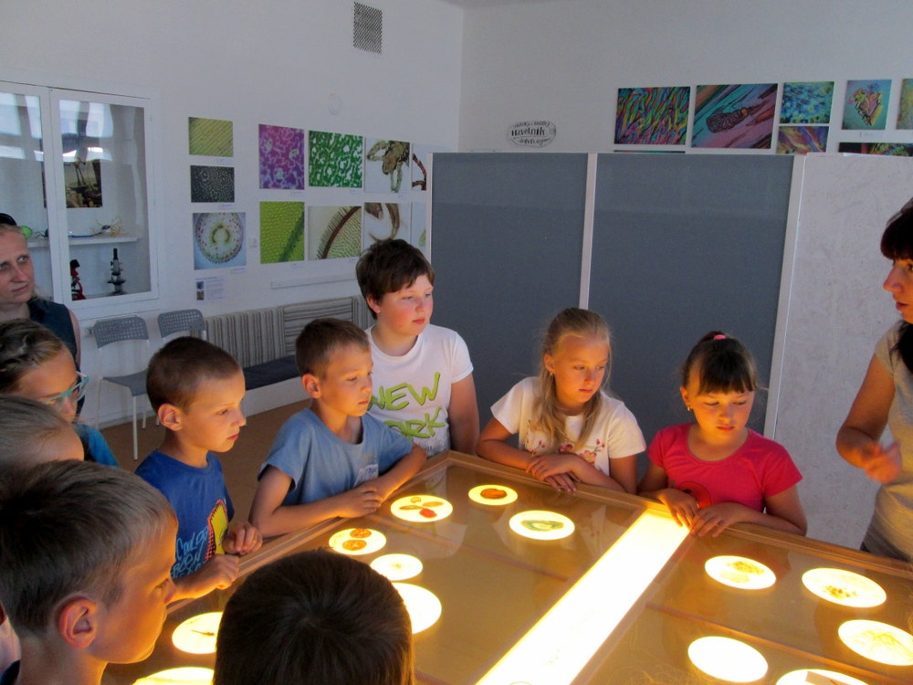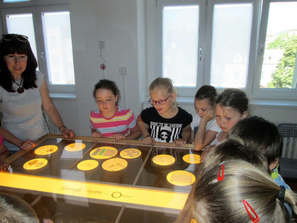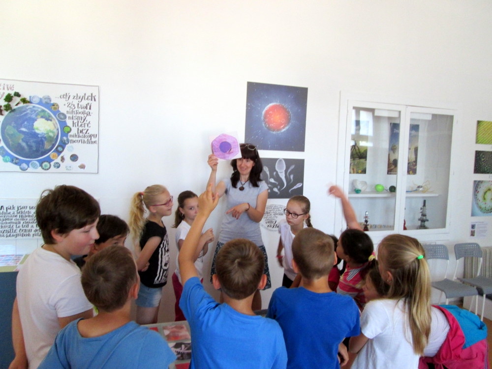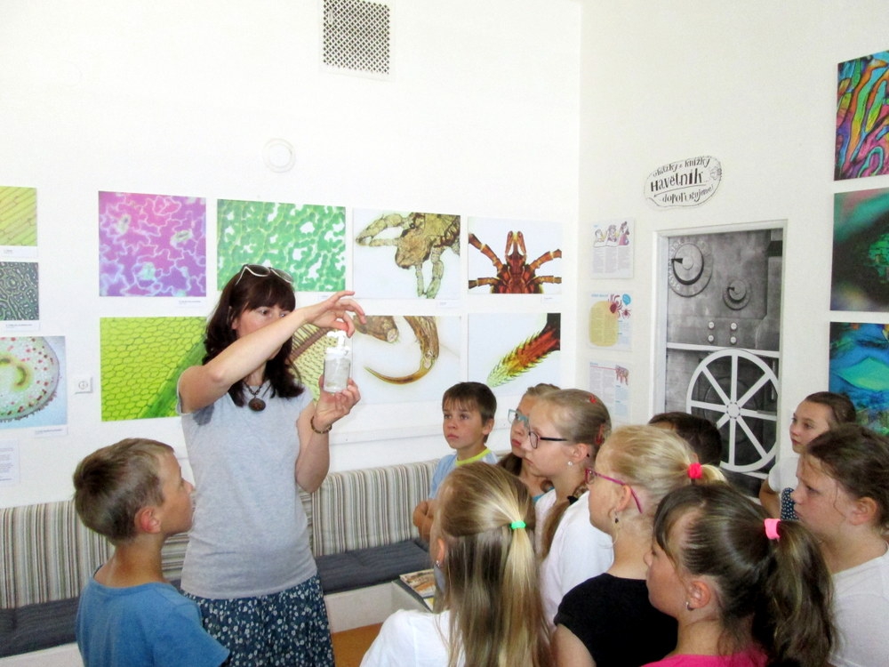 Součástí expozice je výstava mikro a makrofotografií, žáci si vyzkoušeli, jak vypadají různé předměty pod mikroskopem a samozřejmě na nás čekala i tvořivá dílničkaJ. Po výstavě jsme si pochutnali na výborné zmrzlině a pokračovali zpět na výuku do školy. Děkujeme paní průvodkyni za milé vysvětlení a provedení oběma výstavními místnostmi….