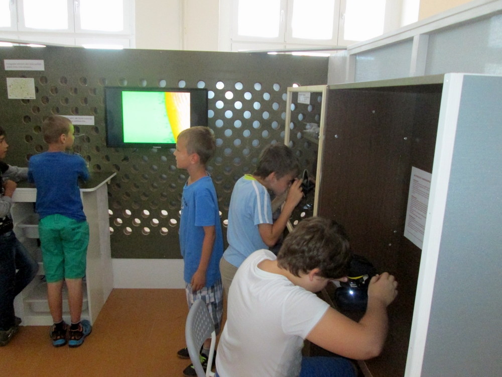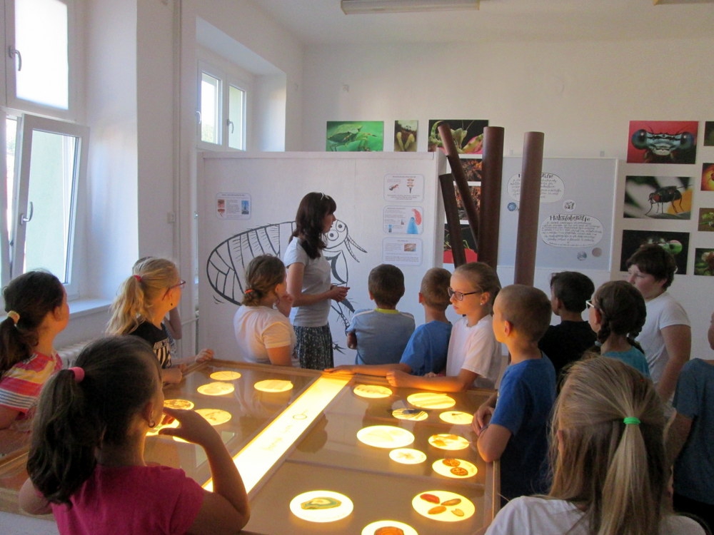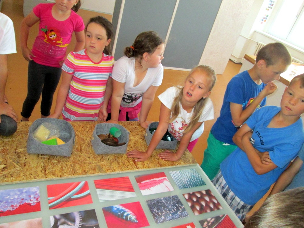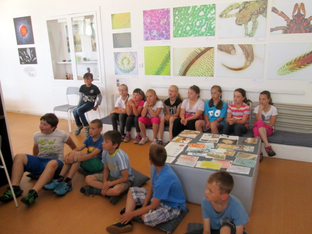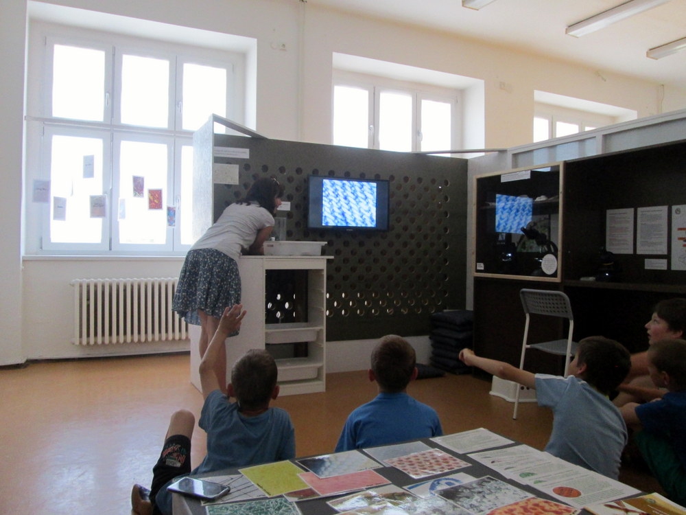 Součástí expozice je výstava mikro a makrofotografií, žáci si vyzkoušeli, jak vypadají různé předměty pod mikroskopem a samozřejmě na nás čekala i tvořivá dílničkaJ. Po výstavě jsme si pochutnali na výborné zmrzlině a pokračovali zpět na výuku do školy. Děkujeme paní průvodkyni za milé vysvětlení a provedení oběma výstavními místnostmi….