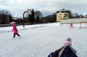 Letošní krásnou zimu využívají čtvrťáci k sáňkování a bruslení na sídlišti.