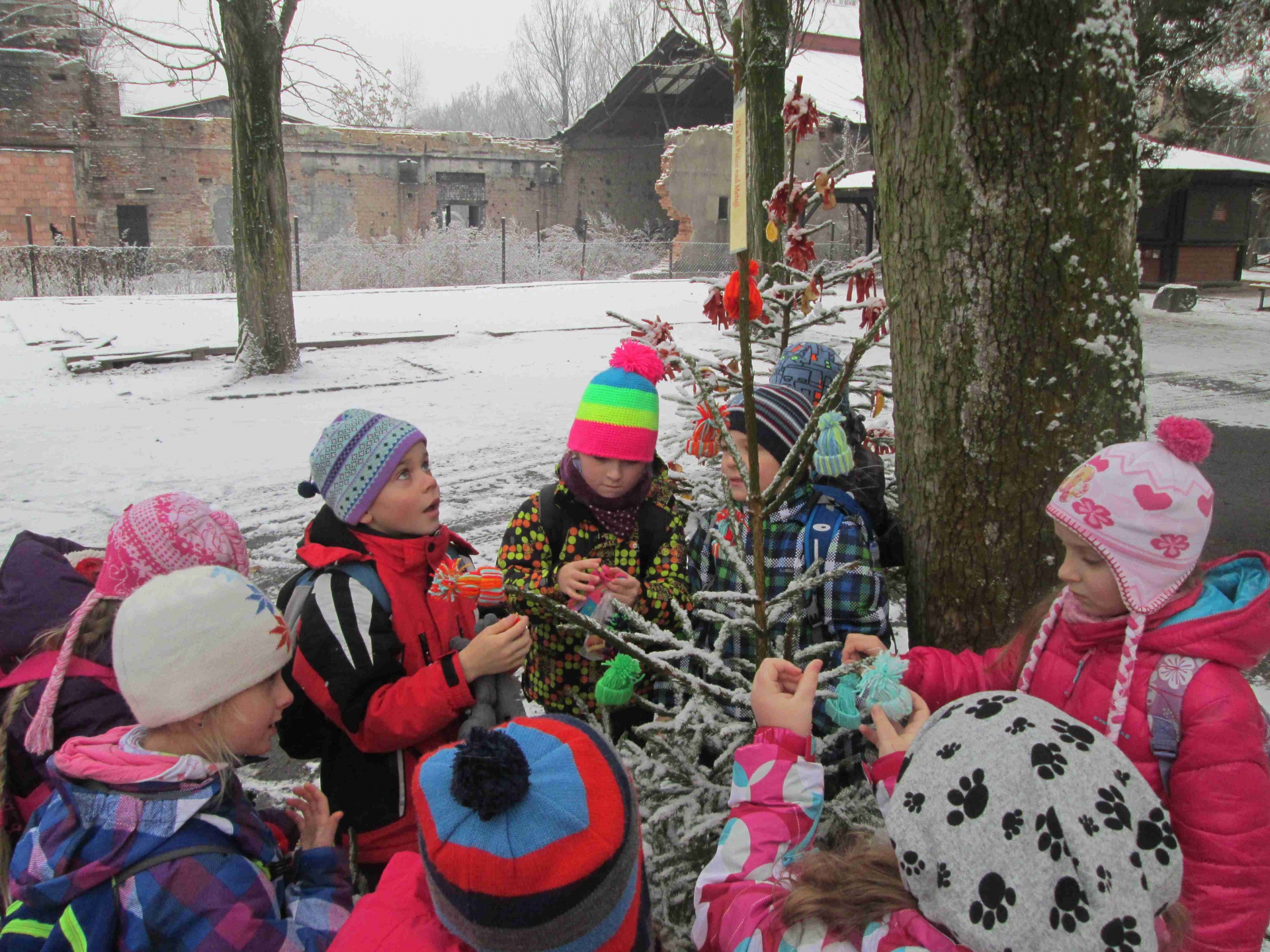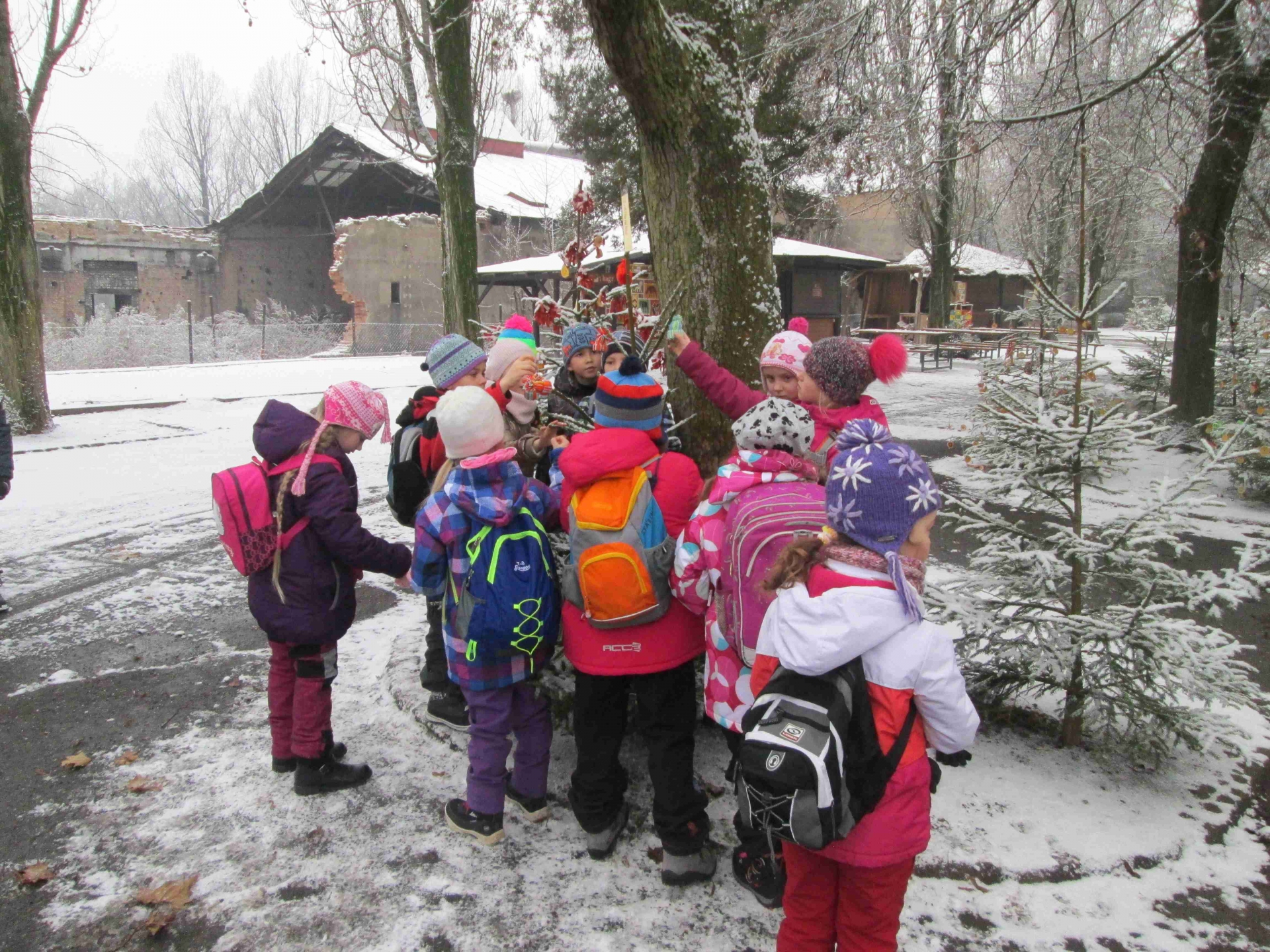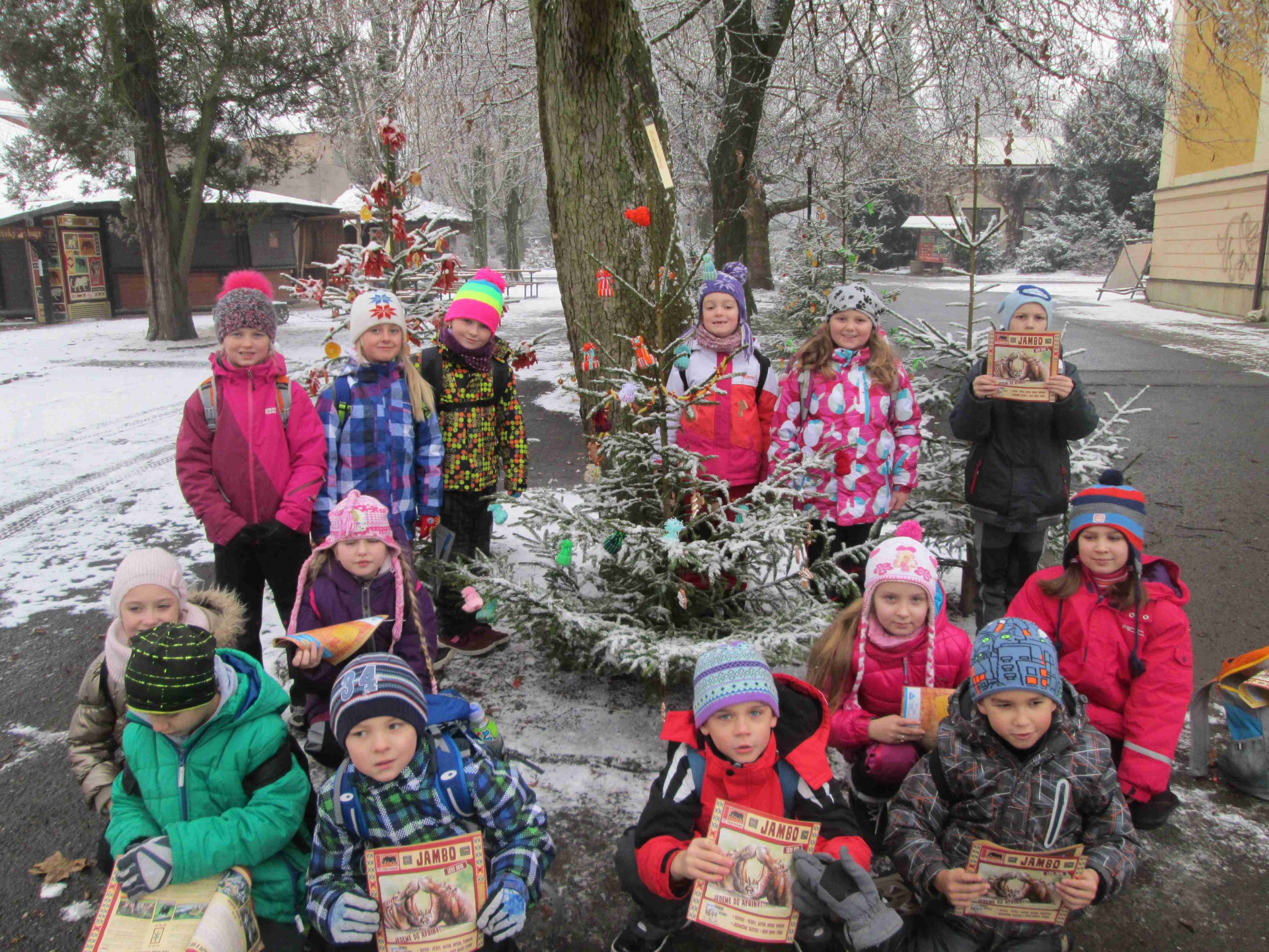 Děti si s sebou vezly ve škole vyrobené ozdoby, aby mohly v ZOO ozdobit stromečky. To se jim vydařilo a už se hrnuly za zvířaty do pavilónů a k výběhům. Velkým zážitkem pro všechny byly prolézačky a africká vesnička. Snad nikomu se nechtělo domů.