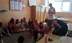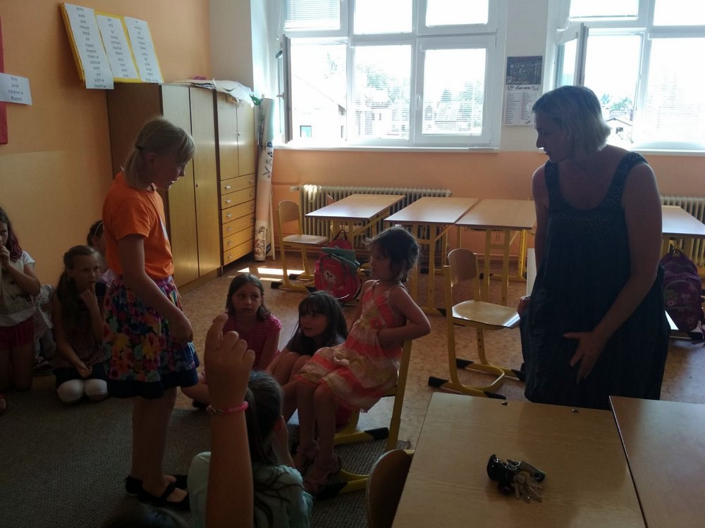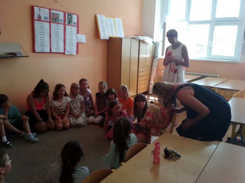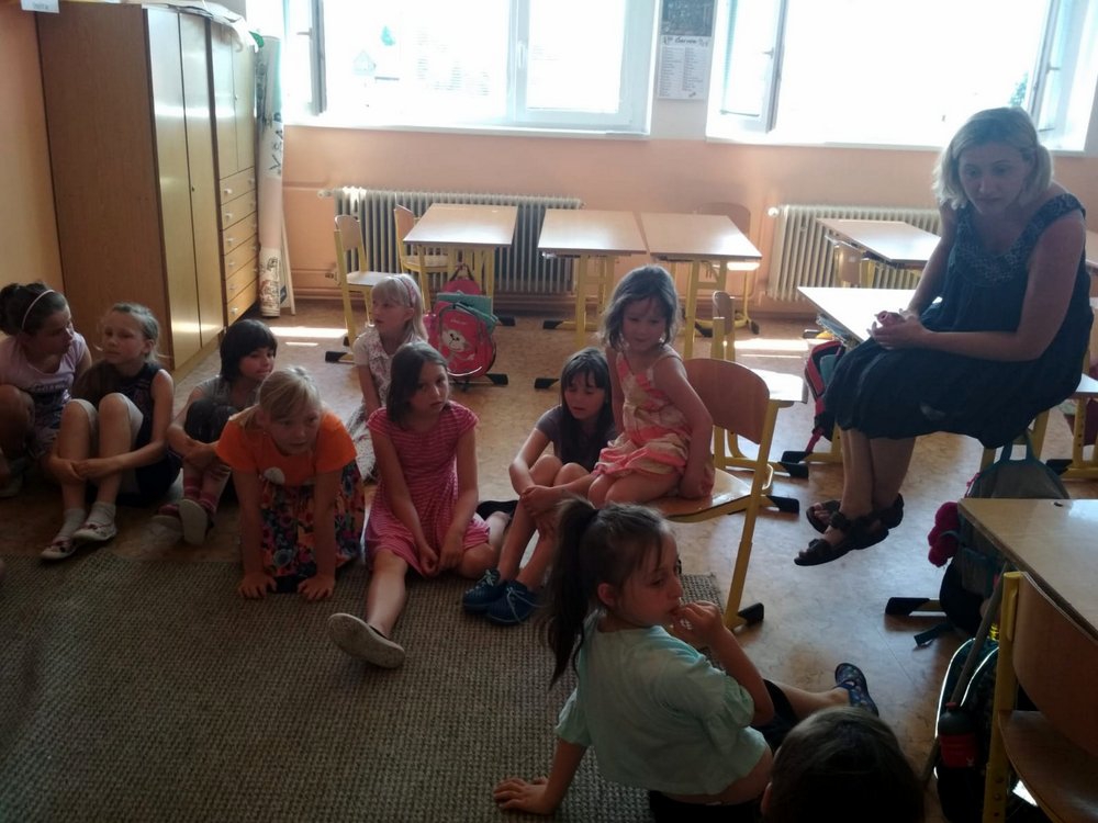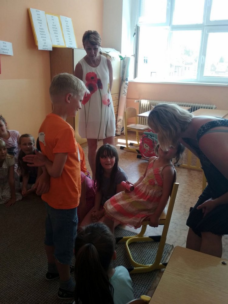 Žáci si zkusili cizí jazyk v praxi a zazpívat s malou slečnou. Zpočátku byli všichni nesmělí, ale maminka malé Niny pomohla při ostychu a do hovoru se zapojili a využili svých znalostí cizího jazyka skoro všichni. Hodinu všichni zakončili zpěvem a pohybem. Hodina se vydařila.