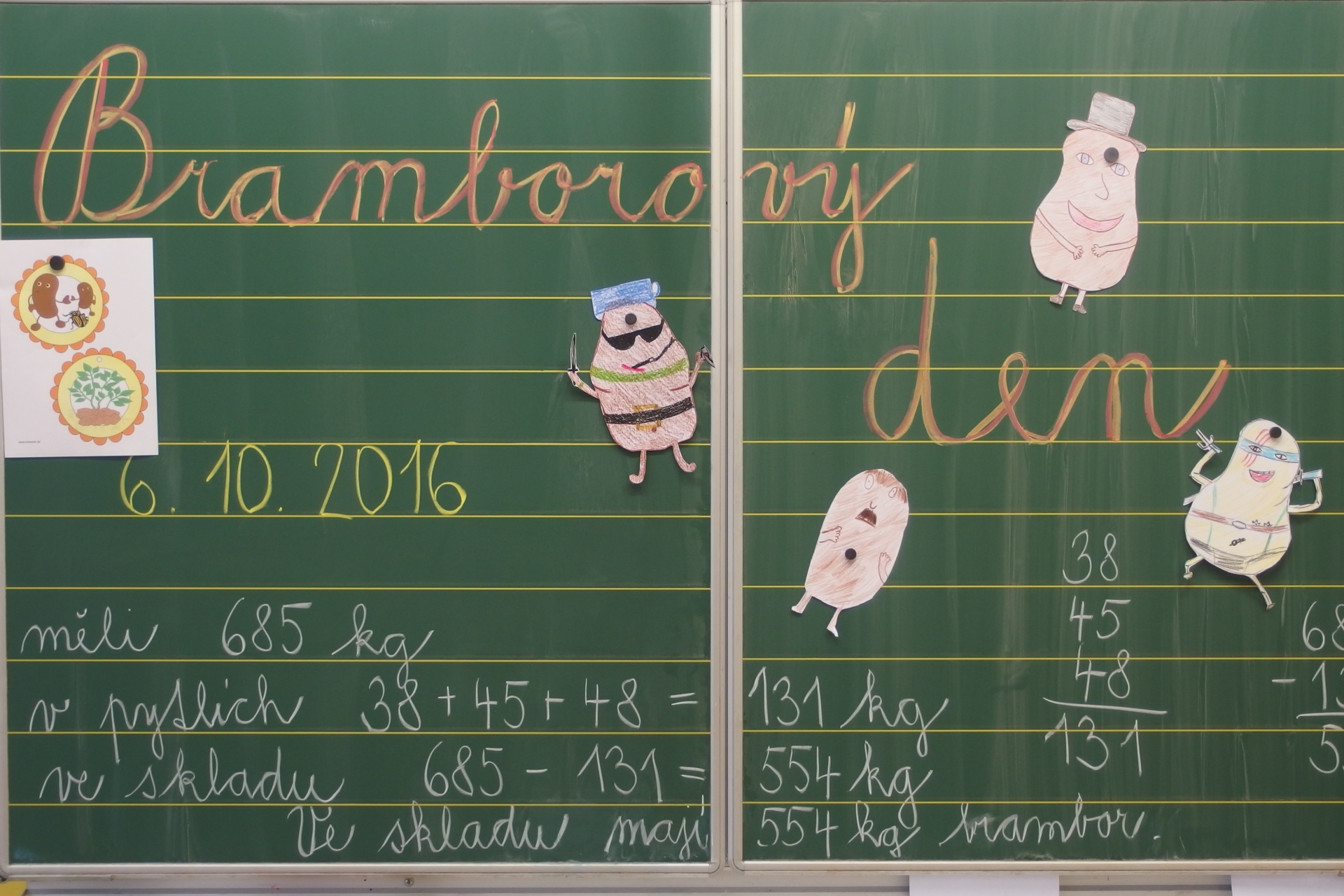 Na čtvrtek 6. října se žáci 4.A pečlivě připravili. Přinesli si brambory, knížky, encyklopedie, vypracovali referáty a „ Bramborový den“ mohl začít. A začalo se v tělocvičně, kde děti s bramborami cvičily, házely, a závodily.